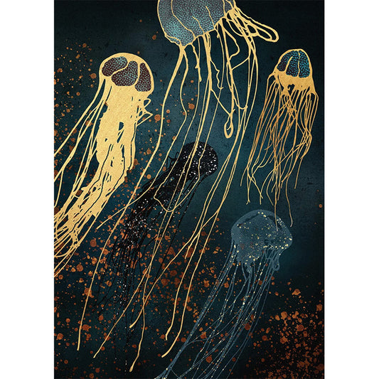 Luxury Golden Jellyfish wall decoration Whale Octopus Wall Art Canvas Painting
