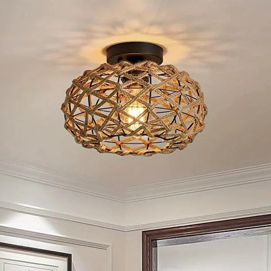 Vintage Chic Hemp Rope Ceiling Light Woven Rattan Decoration
