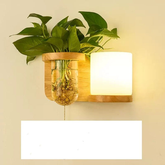 Green Plant Solid Wood Corridor Decoration Wall Lamp