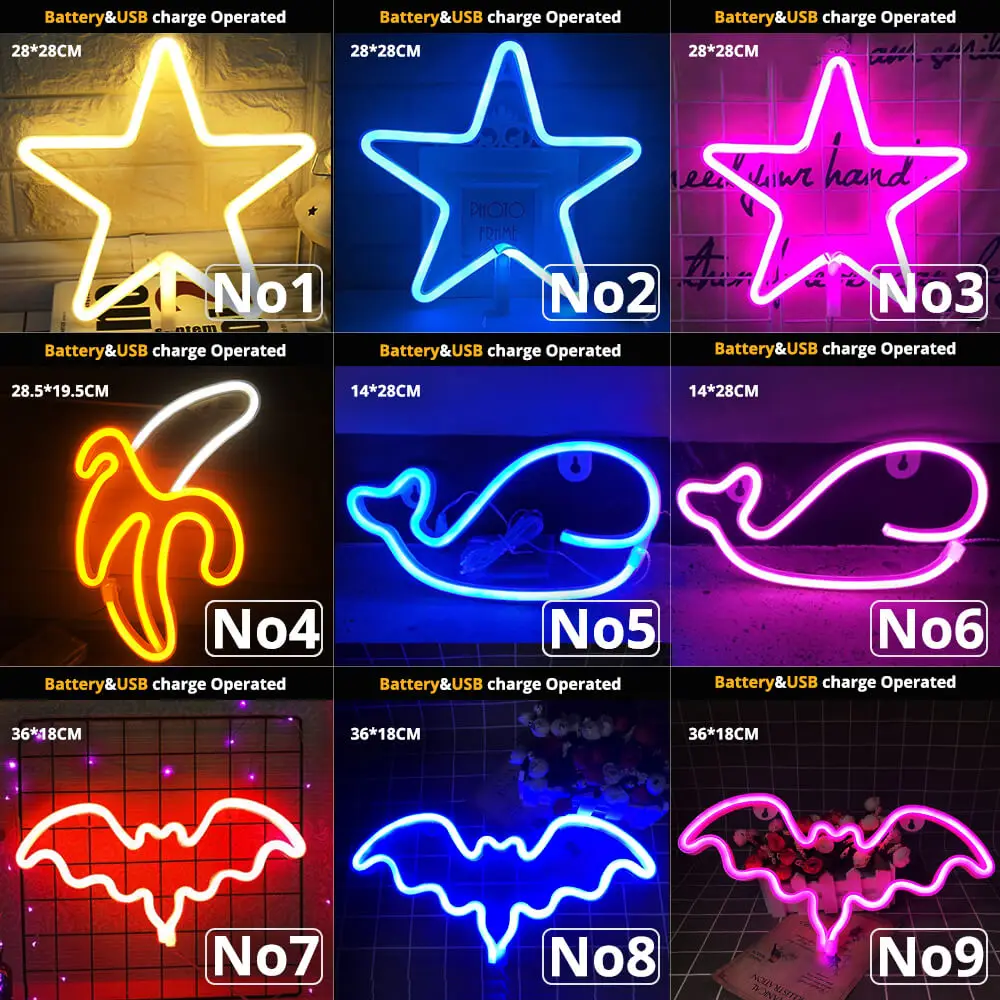 Introducing our LED Neon Night Light Art Sign, perfect for adding a unique touch to any room or event. This versatile sign is perfect for use as wall décor, room decoration, party or bar decoration, and even as a wedding decoration or Christmas gift. With a wattage of 0-5W and voltage of 5V, this LED neon sign is energy-efficient and easy to use. The switch power generation allows for simple control, while the dry battery power source makes it portable and convenient. The animal-shaped atmosphere adds a fun and playful touch to any space. This night light is made of high-quality ABS material and is certified by CE, CCC, ROHS, and FCC. It comes with AA batteries and is ready to use straight out of the box. Don't miss out on this stylish and unique LED Neon Night Light Art Sign, perfect for adding a touch of personality to any space.