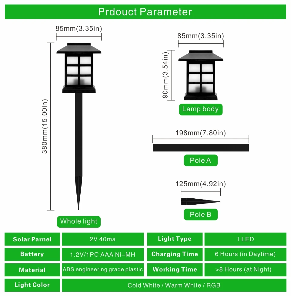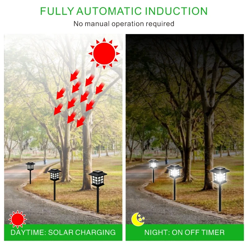 Our Led Solar Lawn Lamp is easy to install, simply place them in your desired location and let the sun do the rest. The solar panels will charge during the day and automatically turn on at dusk, providing you with hassle-free lighting all night long. No need to worry about wiring or electricity bills!