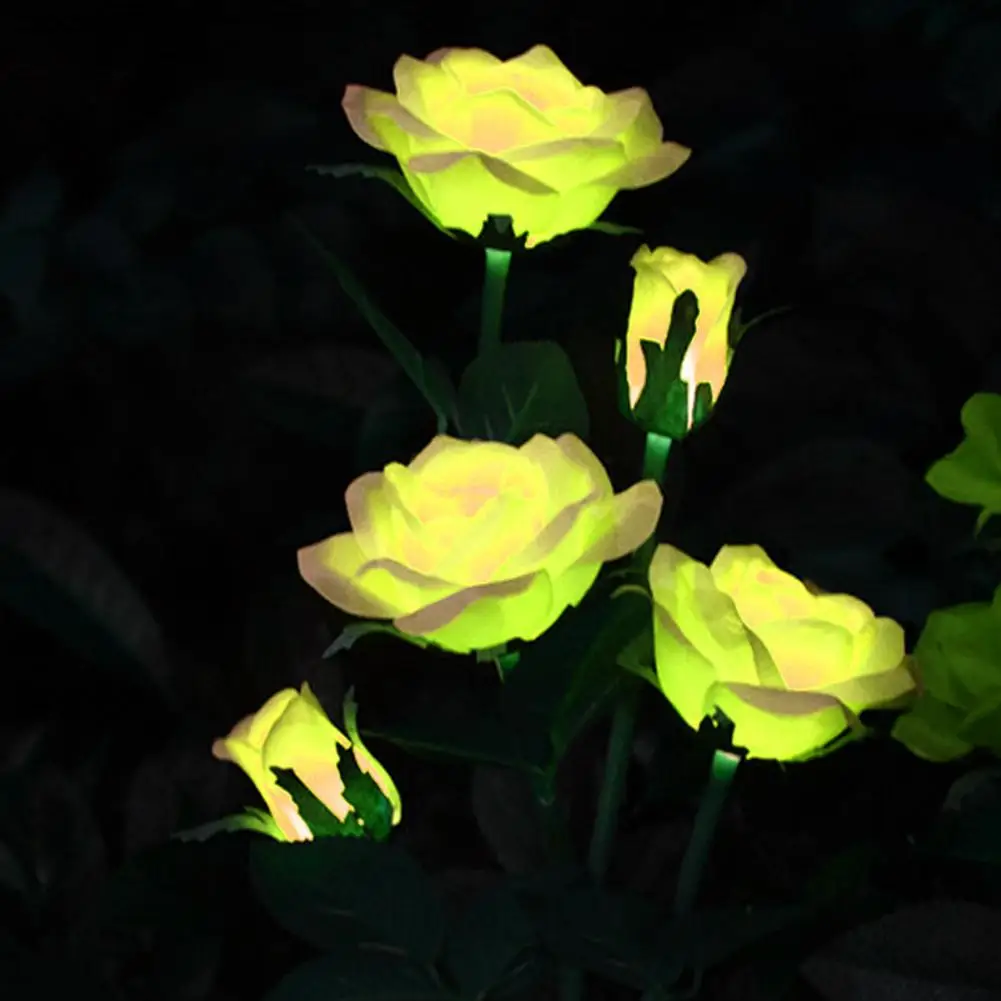 3-7 Head LED Solar Simulation Rose Flower Solar LED Light Garden Yard Lawn Night Lamp Landscape Garden Home Decoration Flowers L