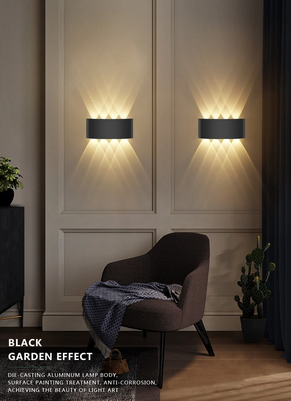Light up and down, the light is soft and uniform, no flash, no glare, and protects the eyes; the lamp bead spacing makes the wall lamp produce perfect superimposed light effect, increases the lamp bead's efficient heat dissipation, and reduces light decay.