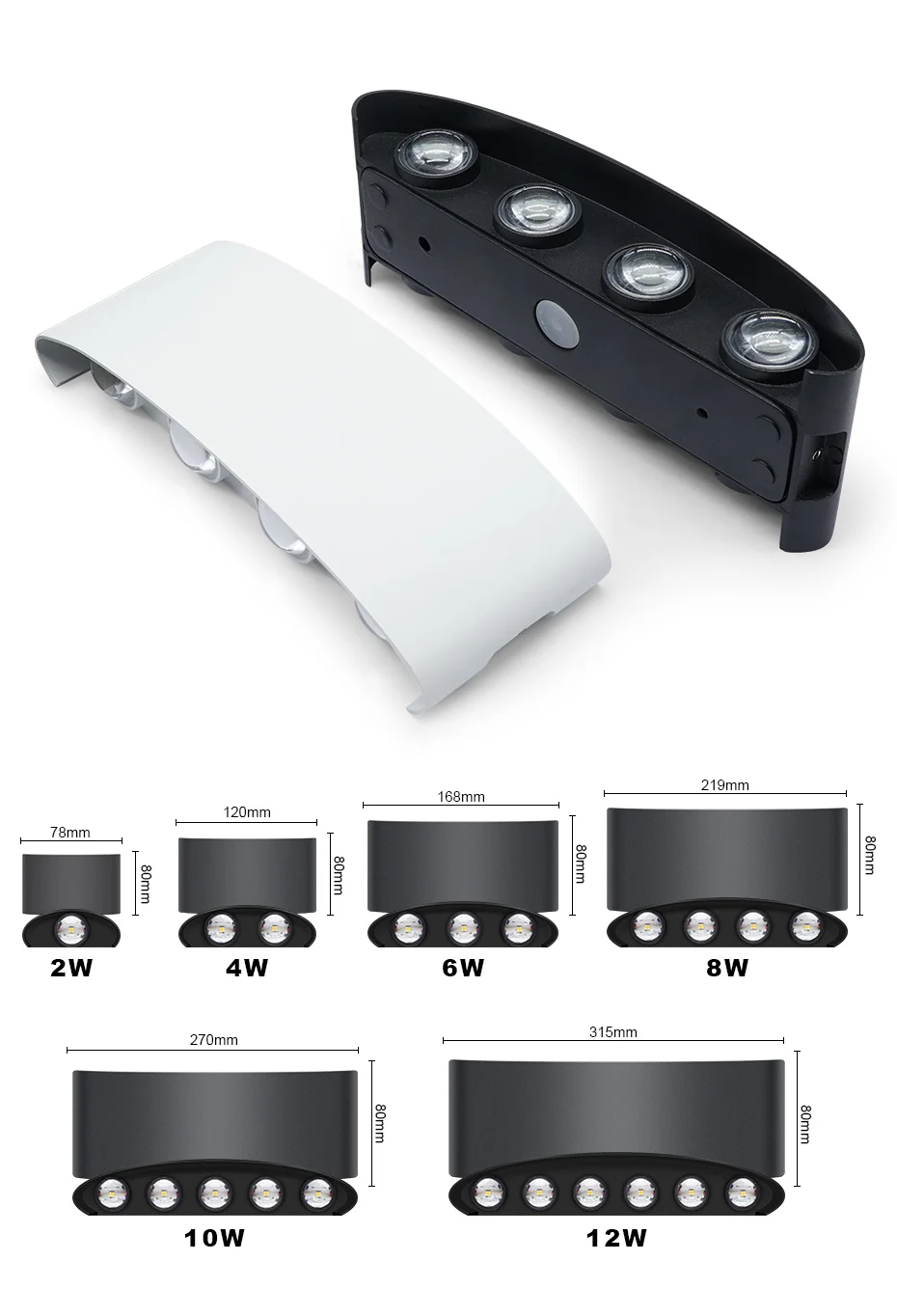 Wattage: 2W / 4W / 6W / 8W / 10W / 12W