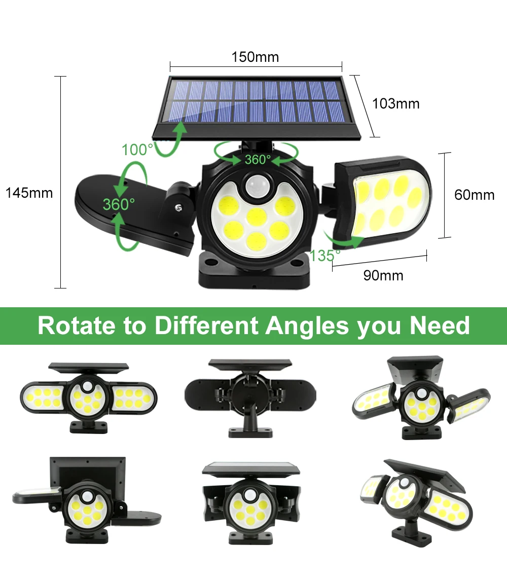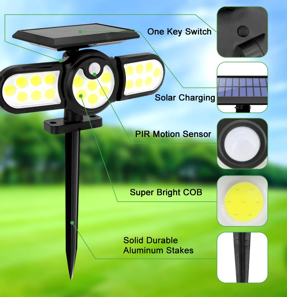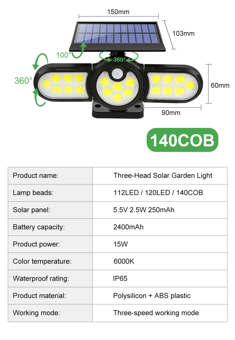 Upgrade your outdoor lighting with our 140 COB Outdoor Solar Lights and experience the convenience and reliability of solar power. Say goodbye to expensive electricity bills and hello to a greener and more sustainable lighting solution. Whether you need lighting for your garden, courtyard, or any other outdoor space, our solar lights are the perfect choice. Don't miss out on the opportunity to enhance the ambiance and functionality of your outdoor area. Get your 140 COB Outdoor Solar Lights today!