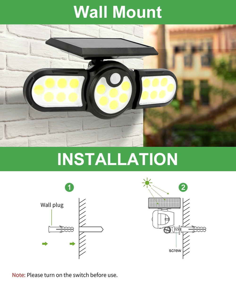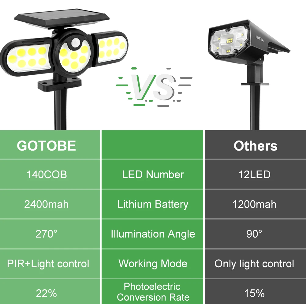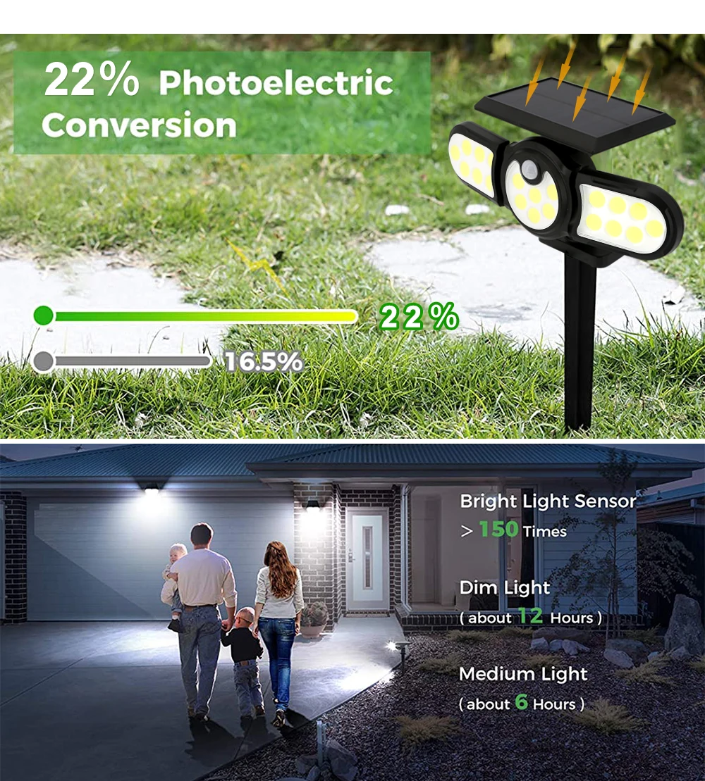 Upgrade your outdoor lighting with our 140 COB Outdoor Solar Lights and experience the convenience and reliability of solar power. Say goodbye to expensive electricity bills and hello to a greener and more sustainable lighting solution. Whether you need lighting for your garden, courtyard, or any other outdoor space, our solar lights are the perfect choice. Don't miss out on the opportunity to enhance the ambiance and functionality of your outdoor area. Get your 140 COB Outdoor Solar Lights today!