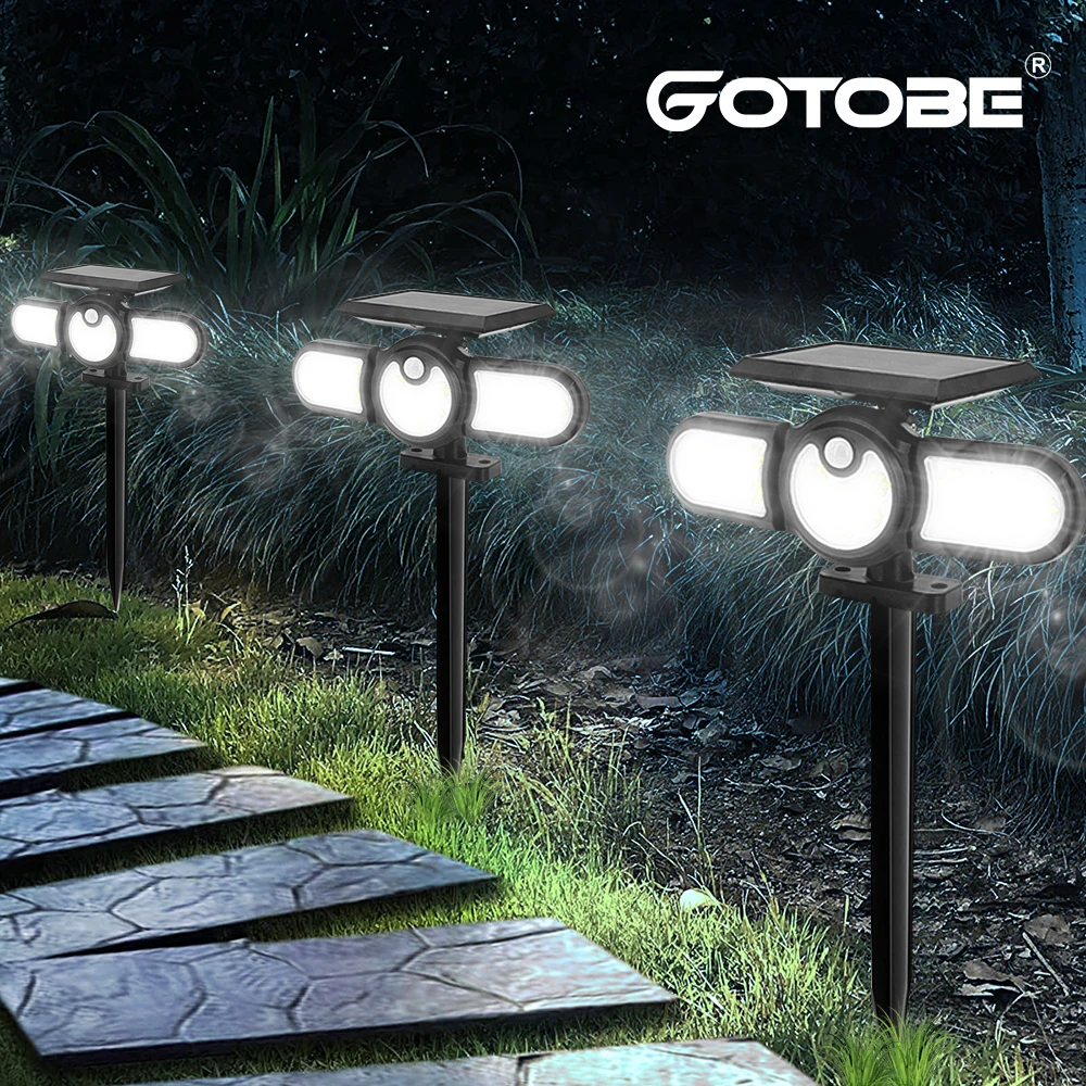 140 COB Outdoor Solar Lights Three Head Lighting Lawn Ground Lamp PIR Motion Sensor Landscape Spotlights For Garden Courtyard