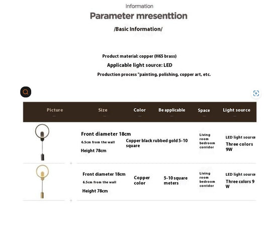 Copper Wall Lamp Light Luxury Bedroom Bedside Lamp
