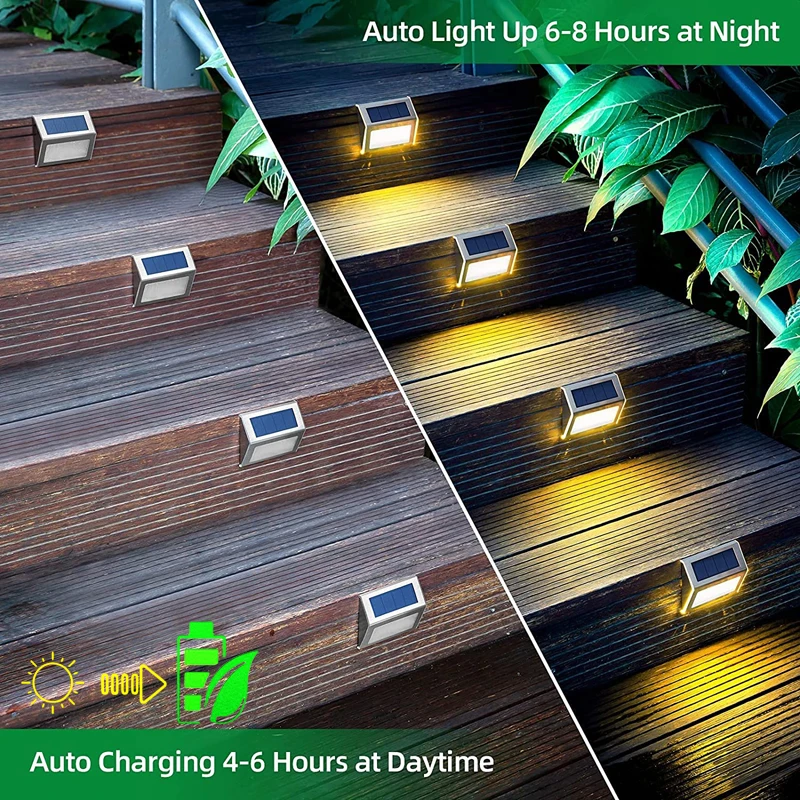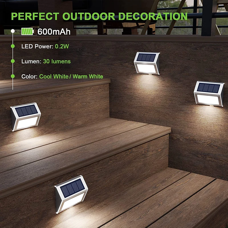 Introducing our Solar Powered LED Deck Lights, perfect for illuminating your outdoor spaces! These waterproof aluminum wall lamps are ideal for gardens, patios, streets, balconies, yards, fences, and steps. With a modern design, they add a touch of style to your home while providing ample lighting for up to 6-8 hours.