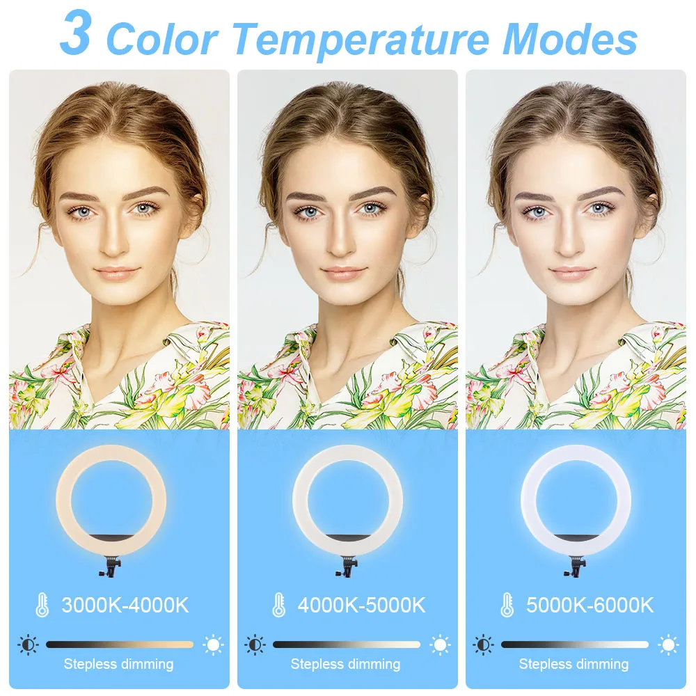 The ring light comes with a tripod stand, providing stability and flexibility in positioning. Whether you're a professional photographer or a makeup enthusiast, this ring light is designed to meet your needs.