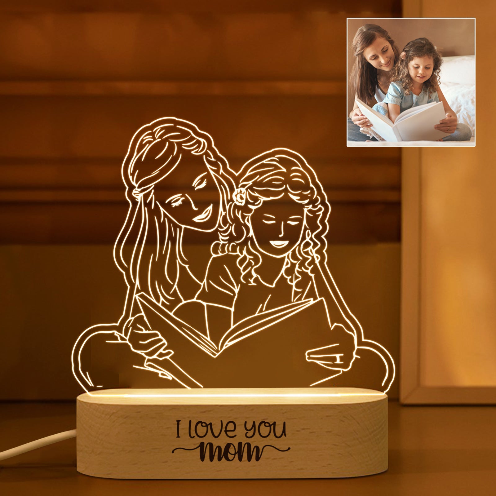 Choose from two different light color options: a wooden oval monochrome base or a wooden oval tricolor base. The light source options range from 1 to 4 photos, allowing you to customize the nightlight with your favorite pictures of you and your loved one.