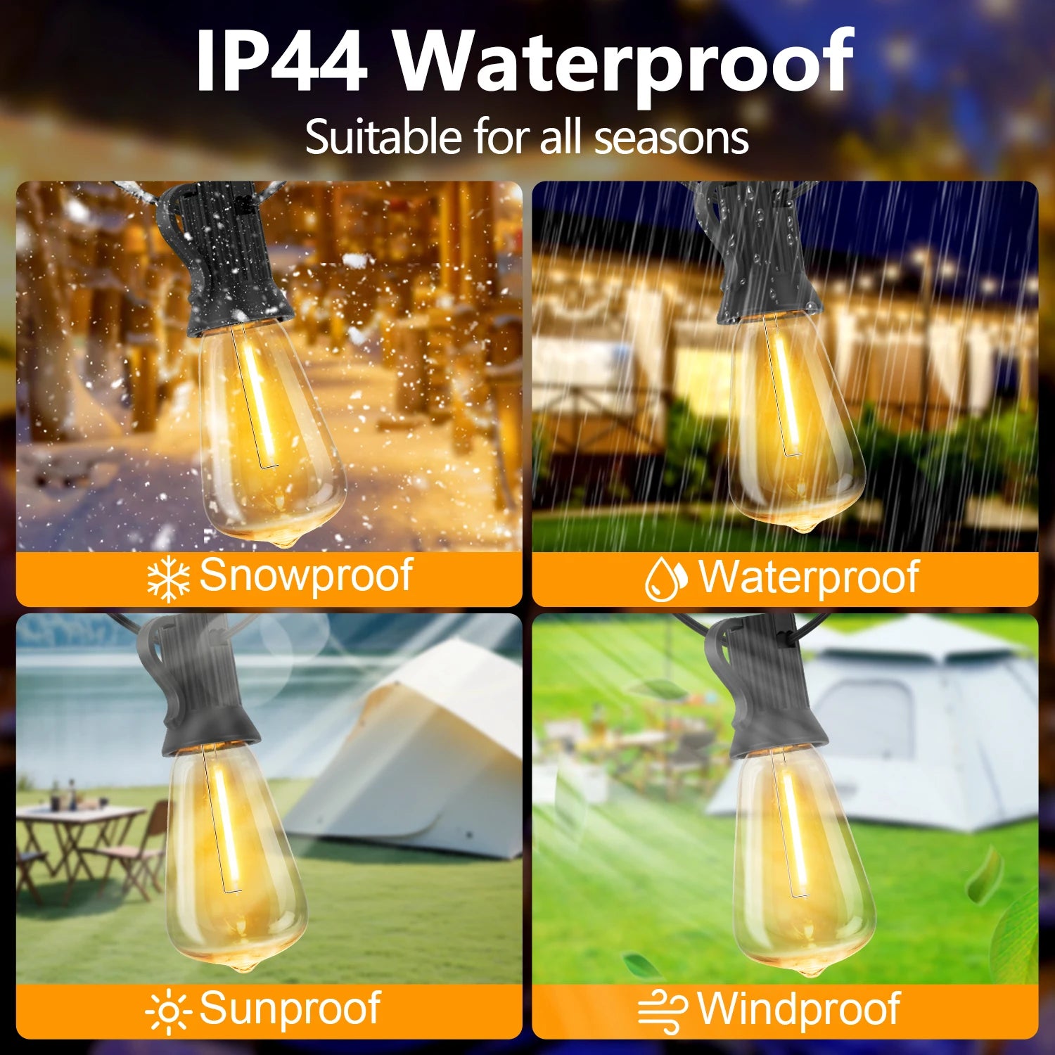 Engineered for Outdoor Resilience: These PET shatterproof bulbs that withstand accidental drops and harsh weather. With IP44 rated protection against rain and dust, plus an operating range of -20°C to 60°C (-4°F to 140°F), they outperform standard decorative lighting in durability. The copper-wire reinforced cables resist tangling while maintaining flexibility for creative draping.