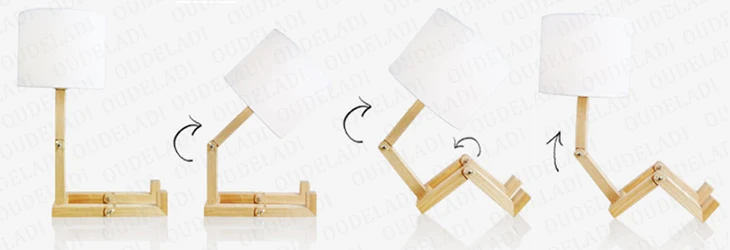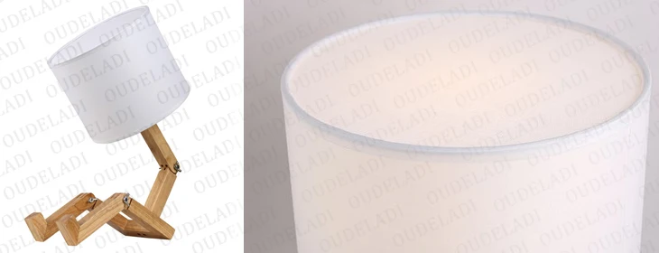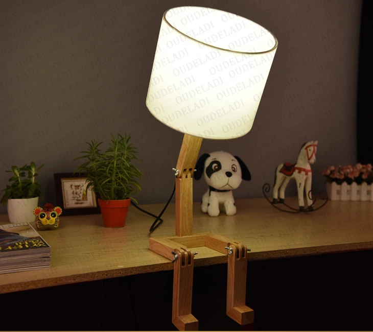 Robot Shape Wooden Table Lamp E14 Lamp Holder 110-240V Modern Cloth Art Wood Desk Table Lamp Parlor Indoor Study Night Light