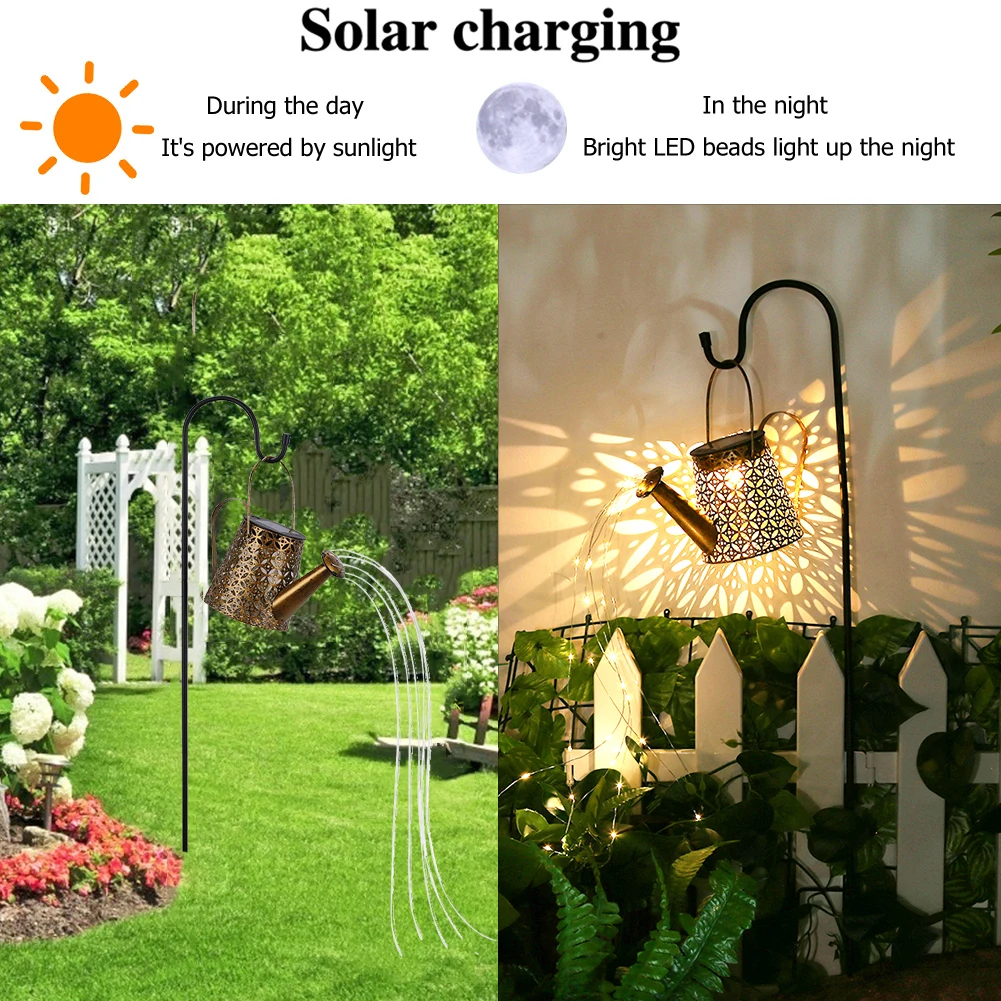 Order your Solar LED Light Outdoor Watering Can String Sprinkles Star Hollow Out Iron Garden Decoration Ornament Art Lamp Hanging Lantern today and start enjoying the beauty and functionality it brings to your garden. With its unique design and eco-friendly features, this lamp is sure to impress. Don't miss out on this opportunity to elevate your garden decor!