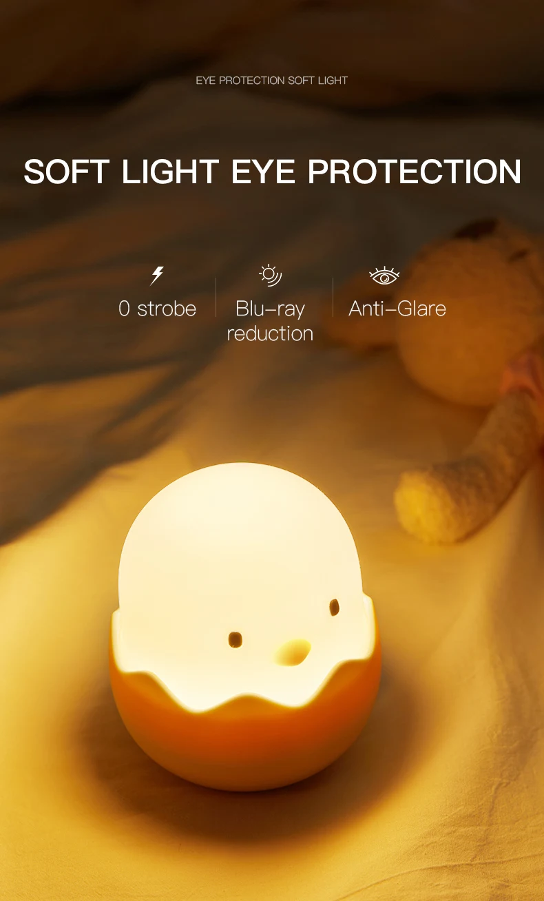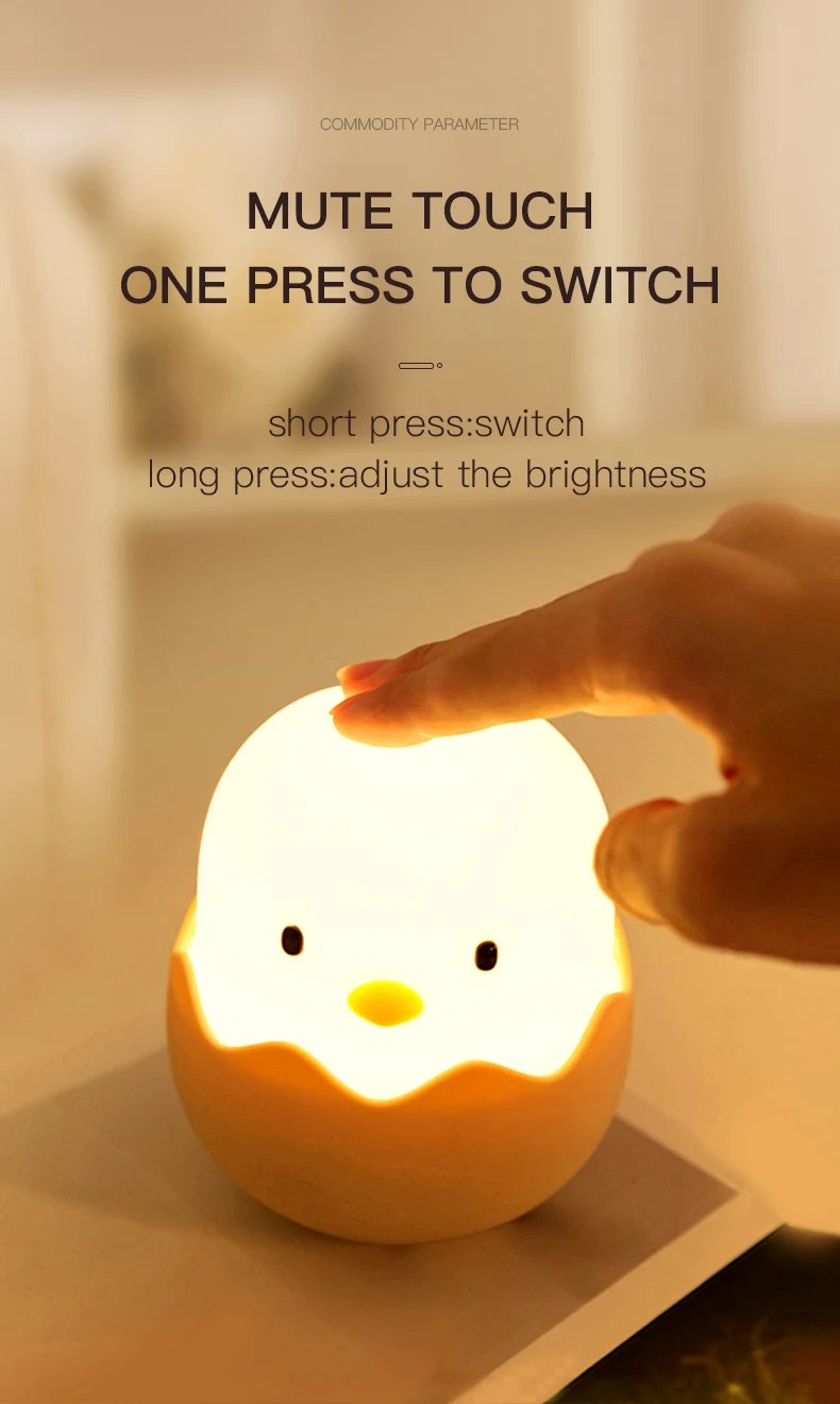 Don't settle for a boring night light. Choose our Led Children Touch Night Light Soft Silicone USB Rechargeable Bedroom Decor Gift Animal Egg Shell Chick Bedside Lamp for a fun and functional addition to your child's room. Your child will love the cute design, and you'll love the convenience and durability of this lamp.