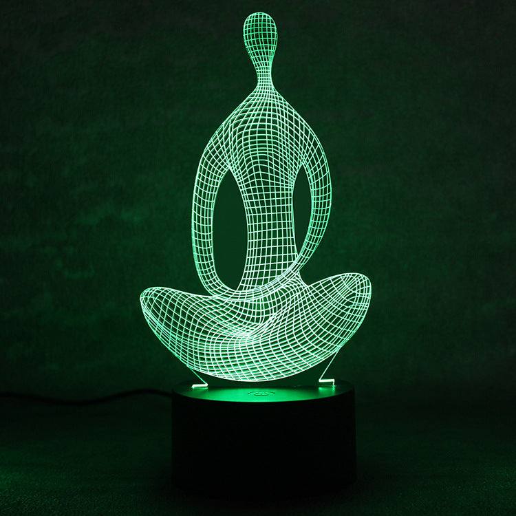 3D 7 Color Changing Yoga LED Meditation Of Acrylic Night Light Bedroom Illusion Lamp Livingroom Bedside Decor