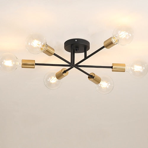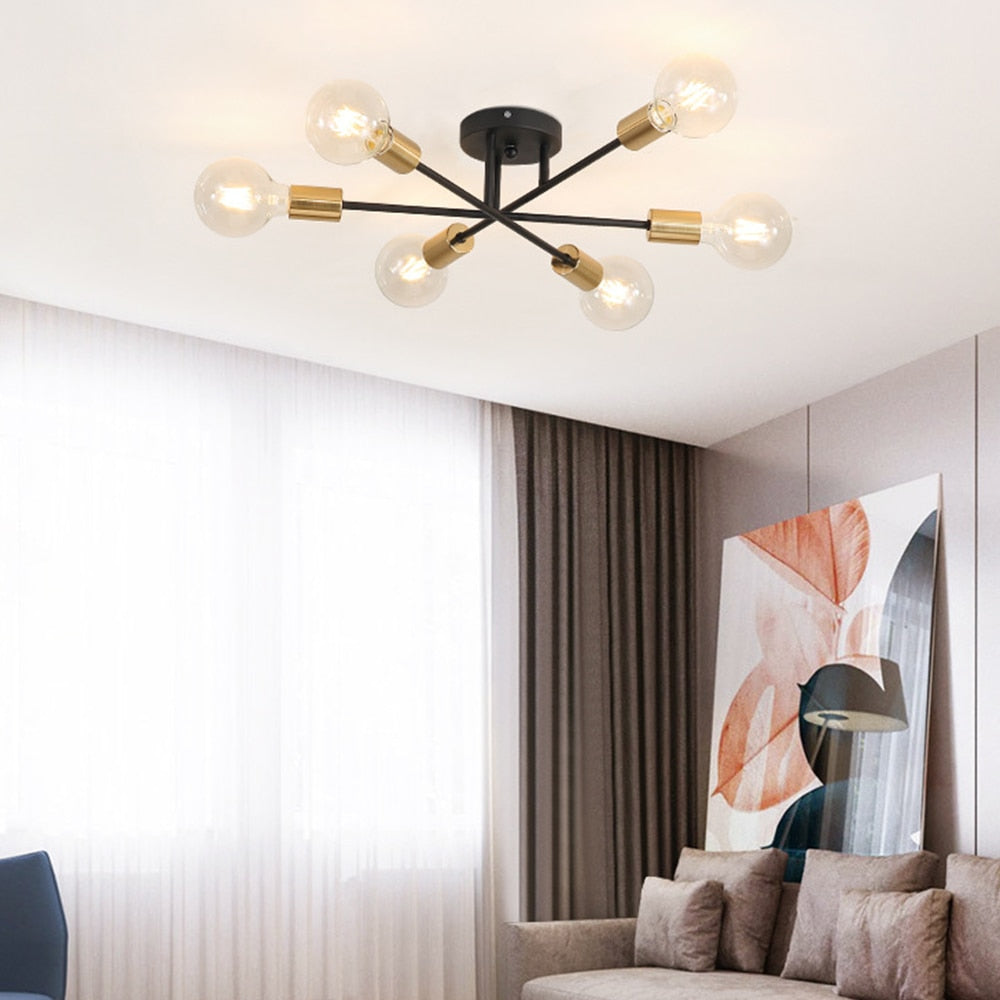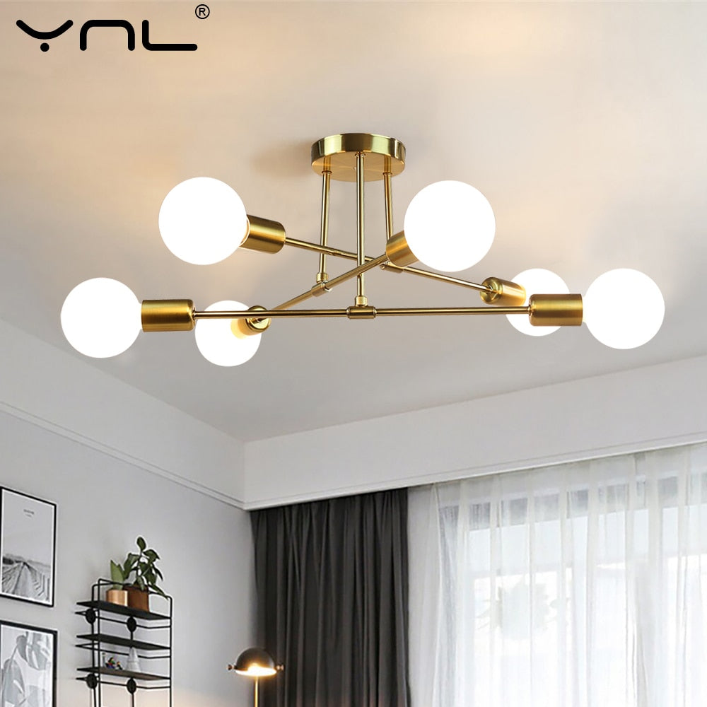 E27 Modern Chandelier Ceiling Lamp Iron Minimalist Personality Creative LED Lighting For Home Bedroom Bathroom Gold Black