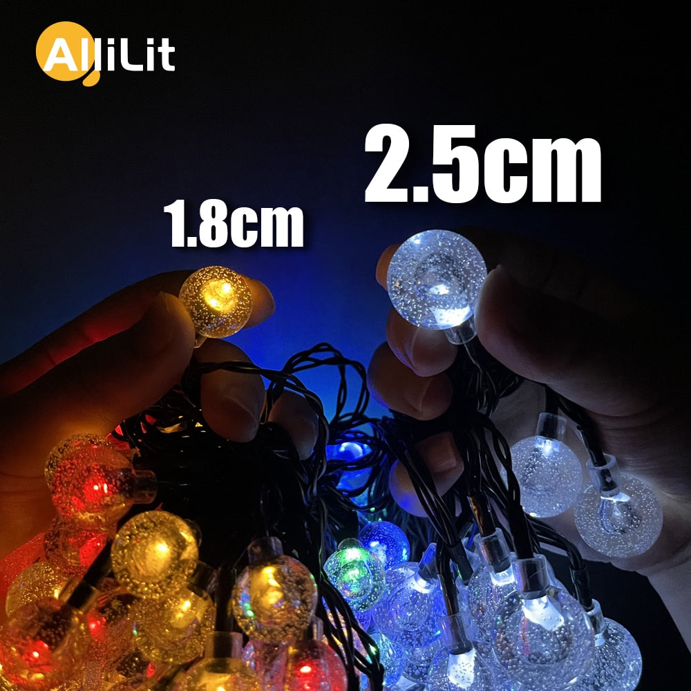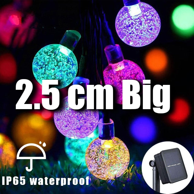 LED Crystal Larger 2.5cm Ball Solar Light Outdoor IP65 Waterproof String Fairy Lamps Solar Garden Christmas Garlands Decoration