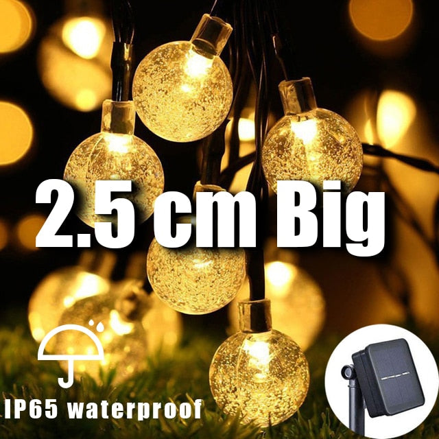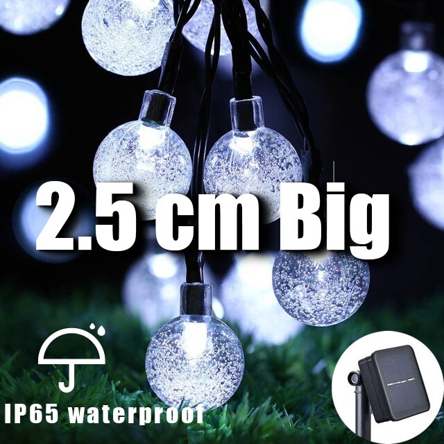 Illuminate your outdoor space with the LED Crystal Larger 2.5cm Ball Solar Light Outdoor IP65 Waterproof String Fairy Lamps Solar Garden Christmas Garlands Decoration. Whether you're hosting a holiday party or simply enjoying a quiet evening outdoors, these lights will create a warm and inviting atmosphere. Don't miss out on this must-have holiday decoration. Order yours today and make your outdoor space shine!