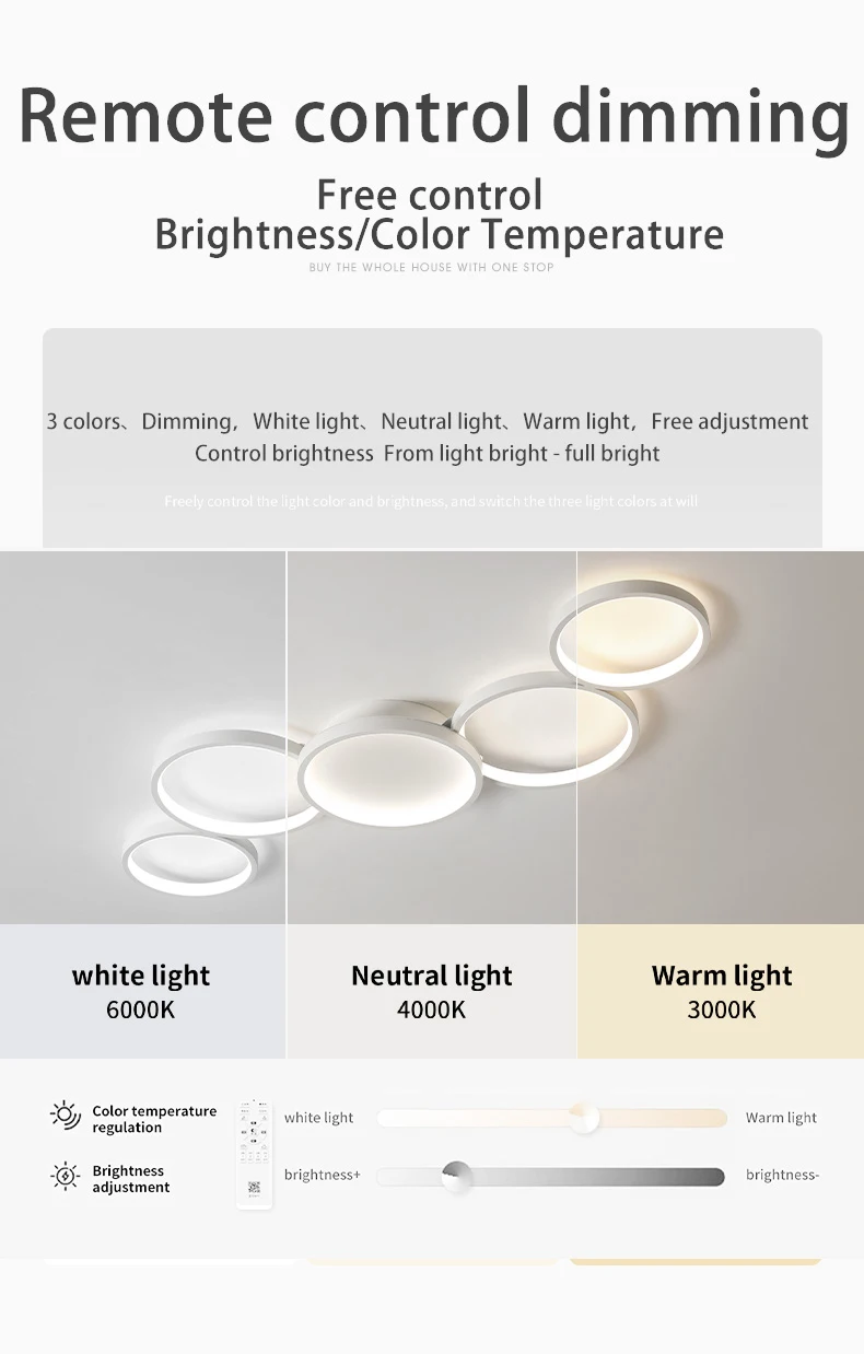 LED Ceiling Light 110v 220v 3 Colors Dimming Modern Creativity Remote Control Living Room Bedroom Lamp