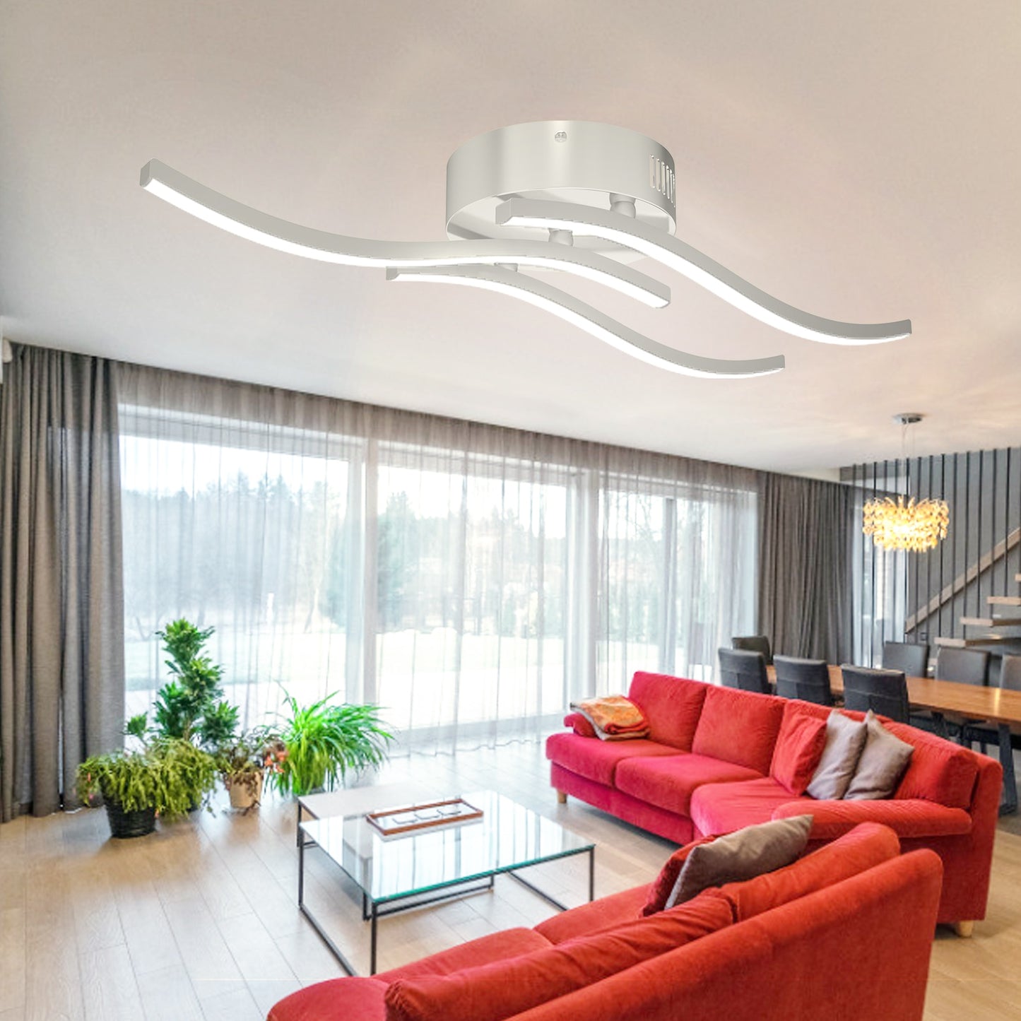Illuminate your home with this beautiful LED Ceiling Light. The warm white Kitchen Chandelier is perfect for adding a cozy and inviting atmosphere to your kitchen. The living room decoration chandeliers offer a modern and stylish touch to your living space.