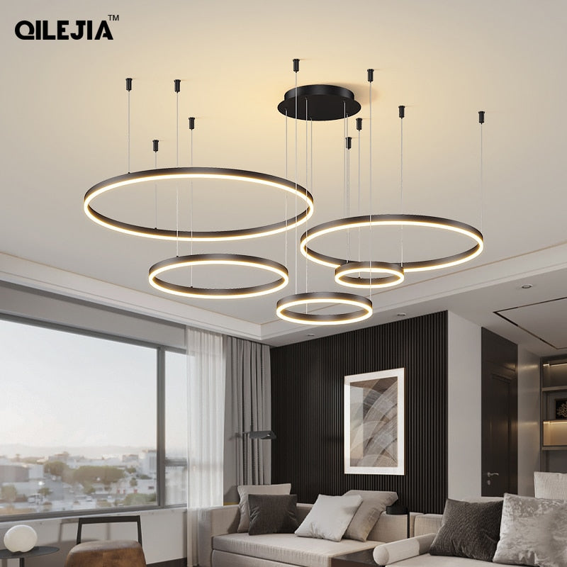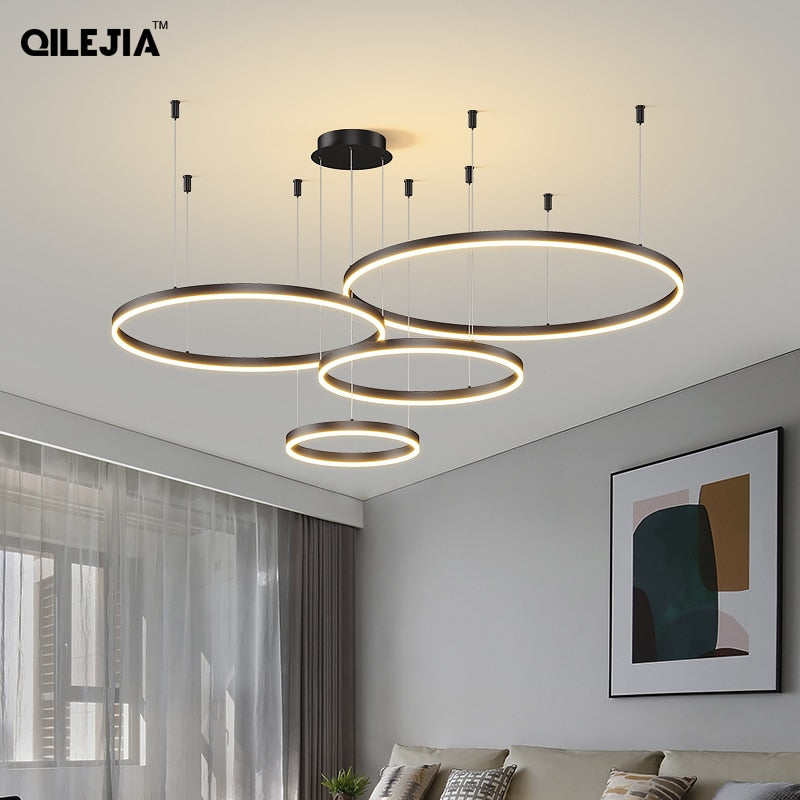 Upgrade your home lighting today with the Modern Brushed Rings Led Chandelier and enjoy its stylish design, energy efficiency, and convenience.