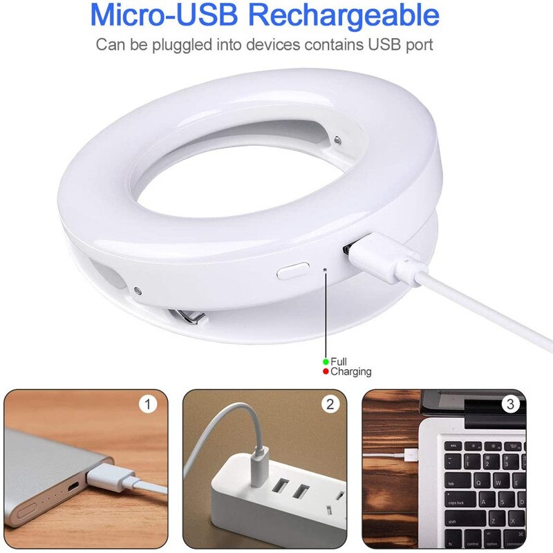 This ring light is powered by USB, making it easy to charge and use on the go. Simply plug it into your phone or any USB port and enjoy hours of continuous lighting. Say goodbye to dull and poorly lit photos, and say hello to professional-looking images.