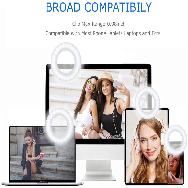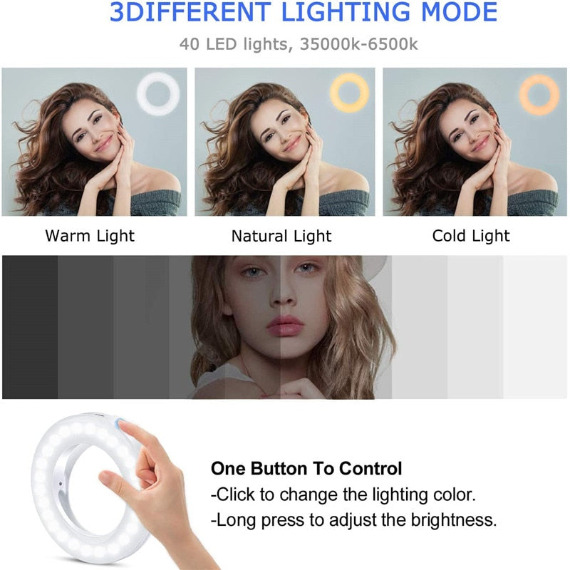 Upgrade 3200K-6500K LED Clip Ring Light 40 LED Lamp Selfie Fill Lights For iPhone Andriod Mobile Phone USB Charge Enhancing Lamp
