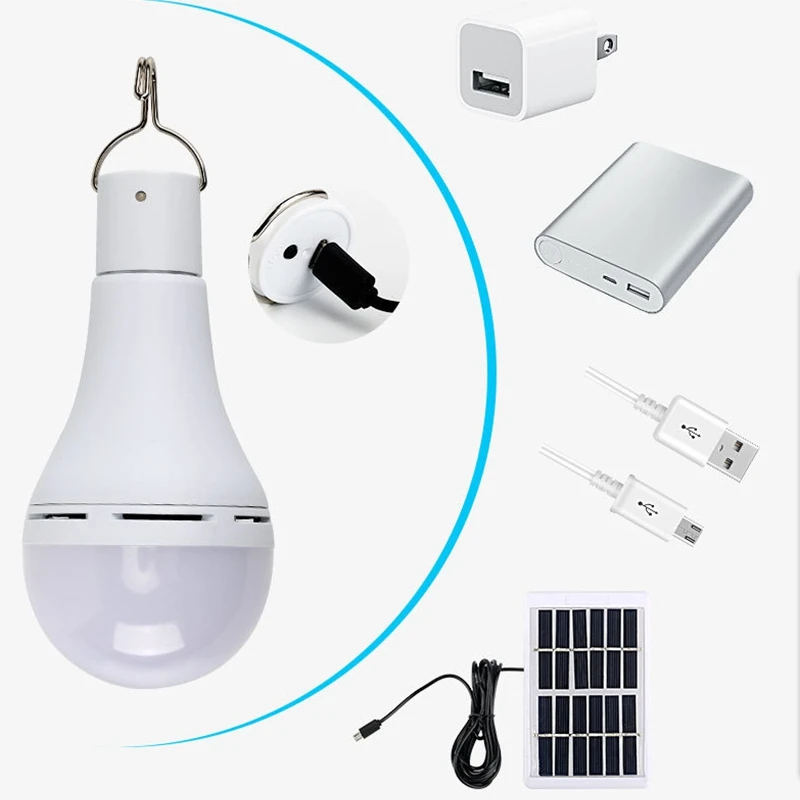 Solar outdoor light is ideal for indoor home lighting, reading, outdoor camping, hiking, fishing, cooking, working, car, shed, chiken coops, barn, power outage, hurricane, storm, emergency and blackouts,etc. The photovoltaic panel is fixed in the roof or a place with sufficient sunlight, the wire is introduced into a room, and the plug is plugged in the port for charging ( a 5-6V charger can be used for charging as well)