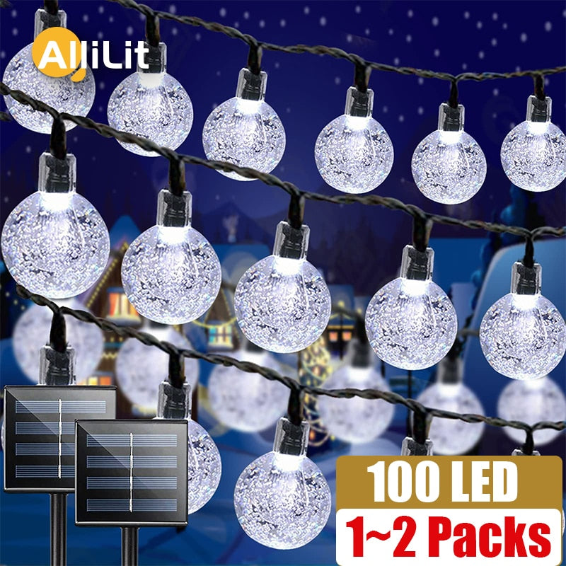 1~2Packs 100 LED Solar Light Outdoor IP65 Waterproof String Fairy Lamps Solar Garden Garlands Christmas Decoration 12M