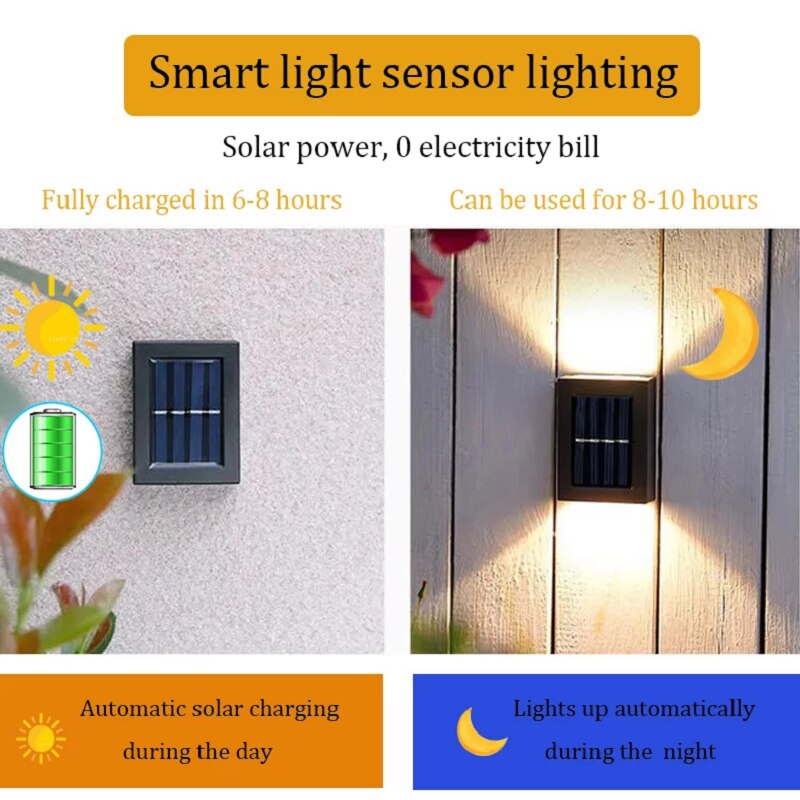 10/4/1pieces LED Solar Wall Lamp Outdoor Waterproof Up and Down Luminous Lighting Garden Decoration Solar Lights Stairs Fence Light