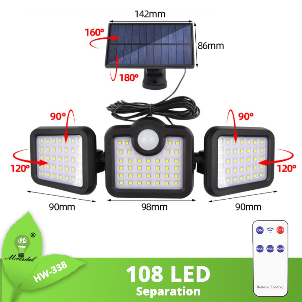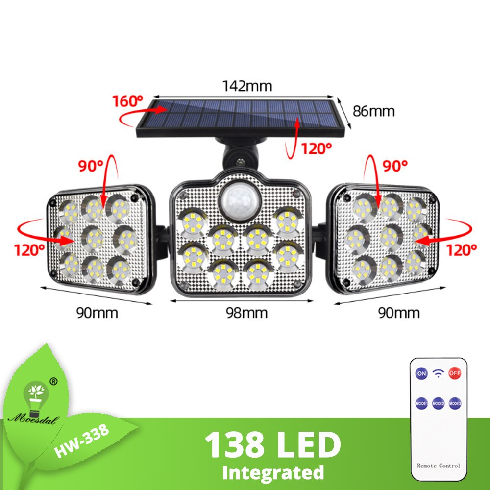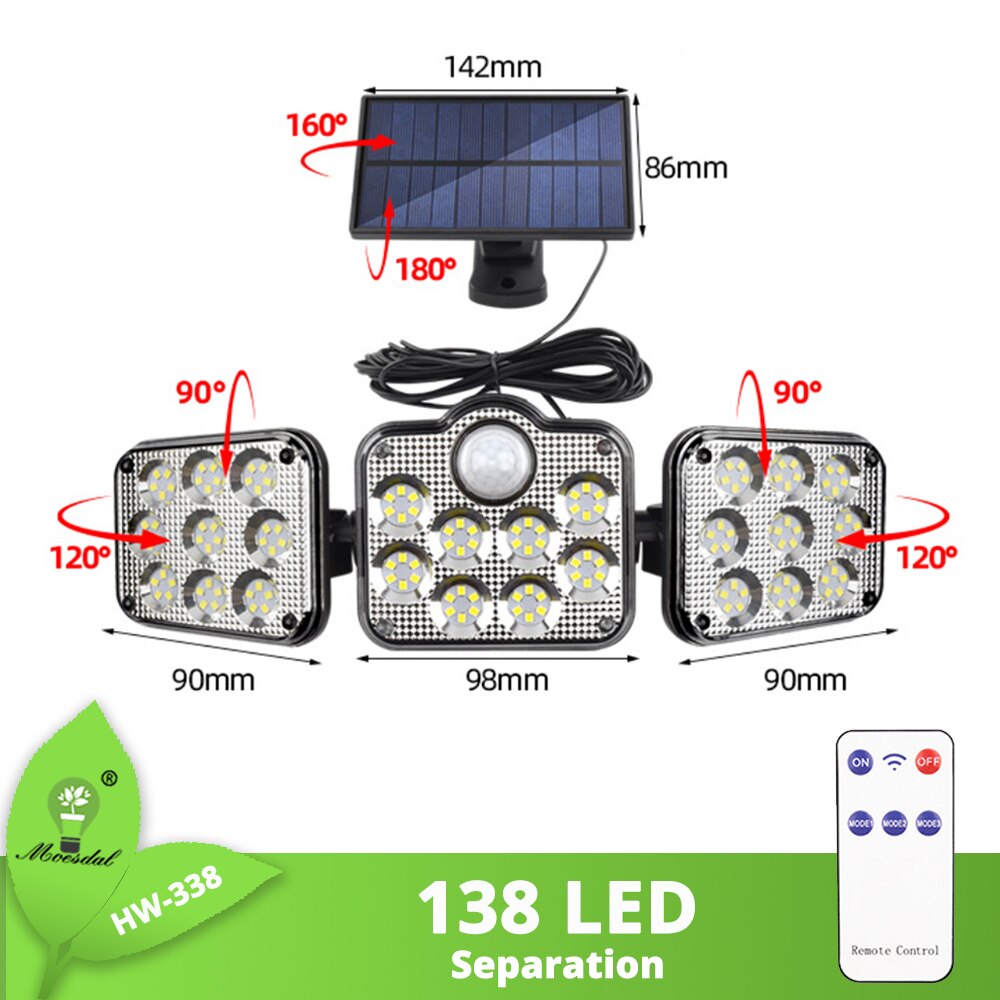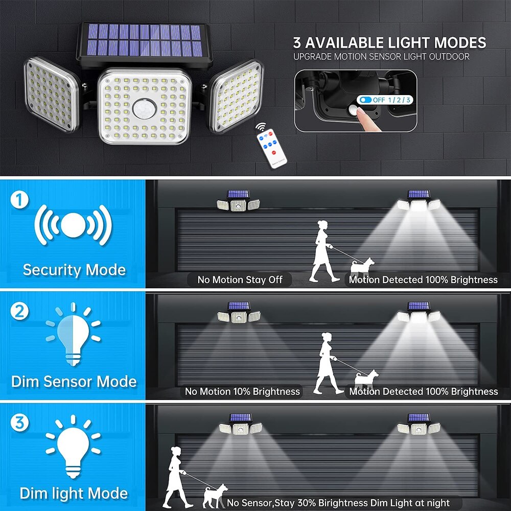 LED Solar Wall Light Outdoor Waterproof Garden Wall Light 3 Working Modes Motion Sensor 270 Wide-angle Lighting Remote Control