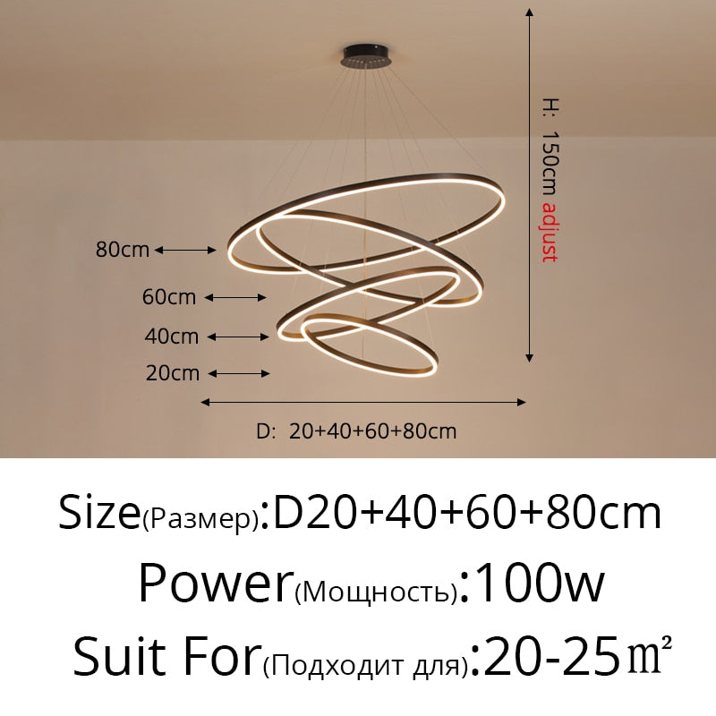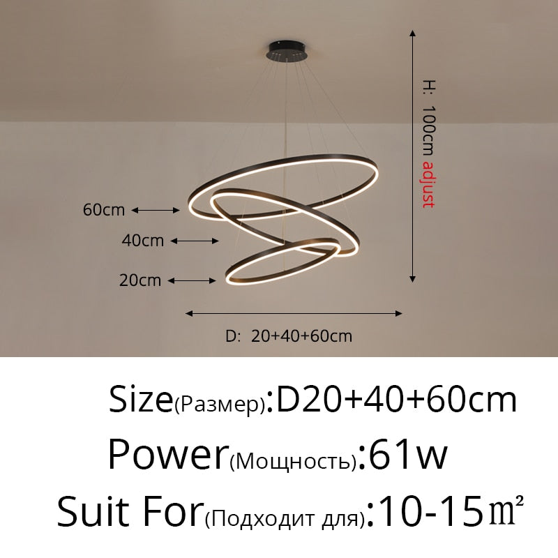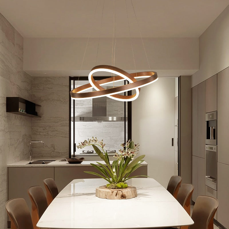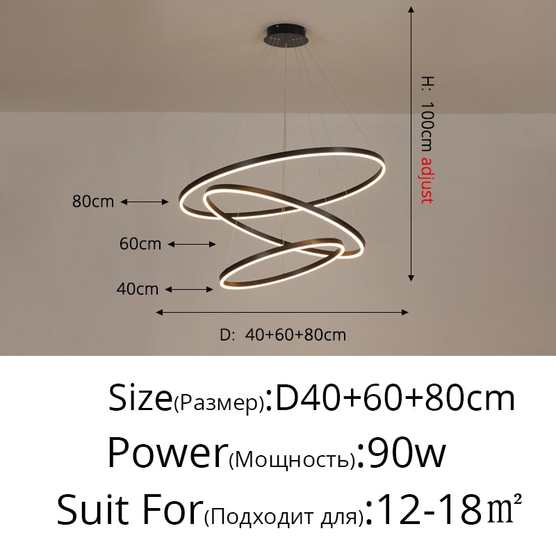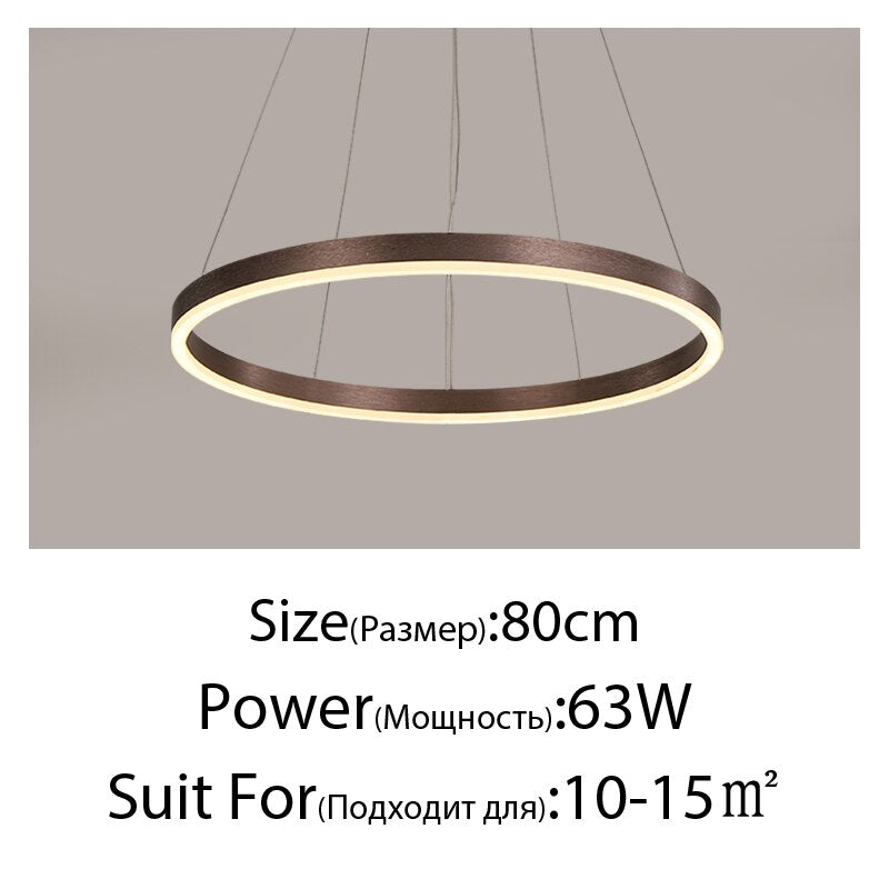 New Luxury Led Chandelier Home Lighting Aluminum Brushed Rings Gold Coffee Hanging Lamps for Living Room Dining Table Bedroom