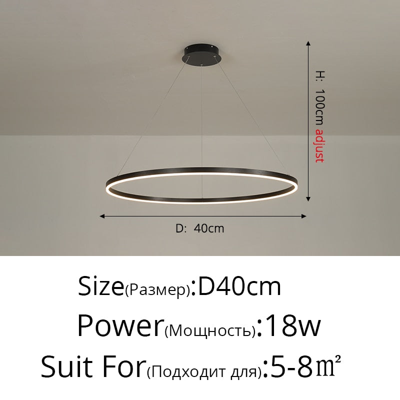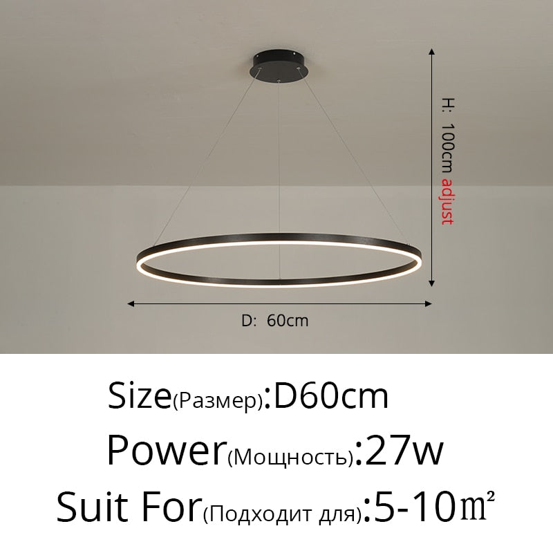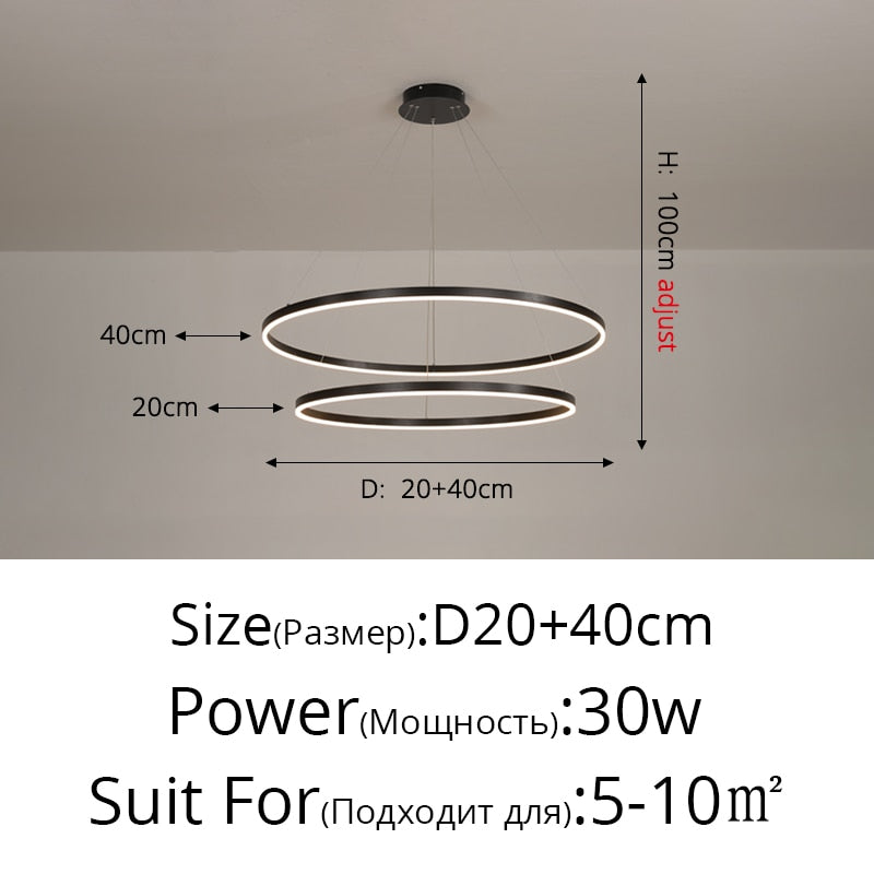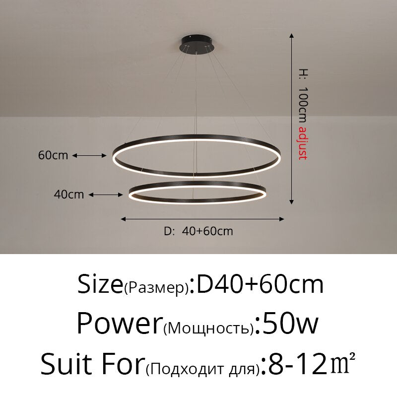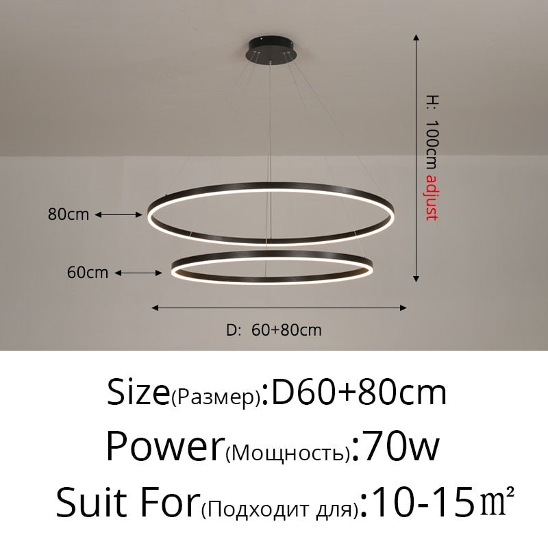 New Luxury Led Chandelier Home Lighting Aluminum Brushed Rings Gold Coffee Hanging Lamps for Living Room Dining Table Bedroom