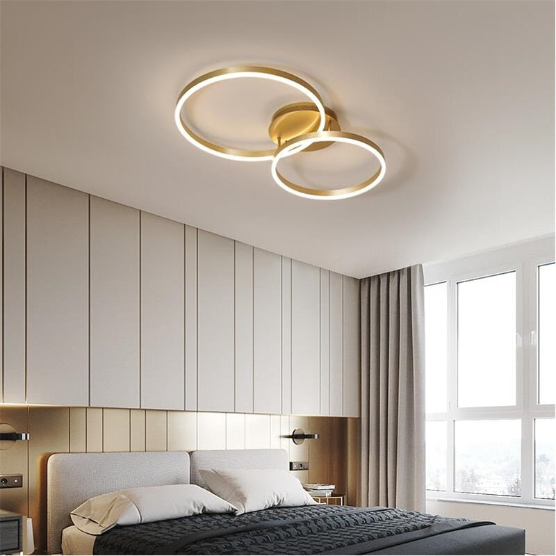 Nordic Creative Round Circle Chandeliers For Bedroom Living Room Restaurant Lighting Golden Coffee Lustre Ring Ceiling Lights