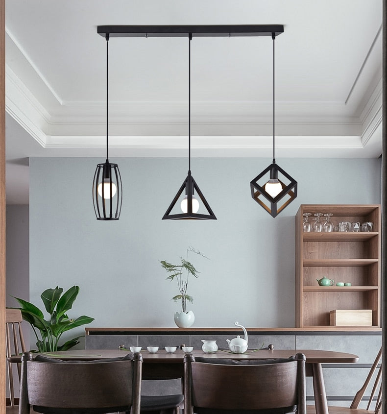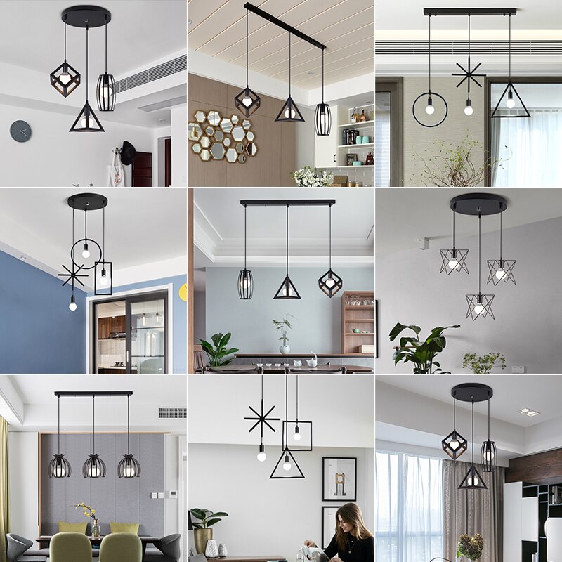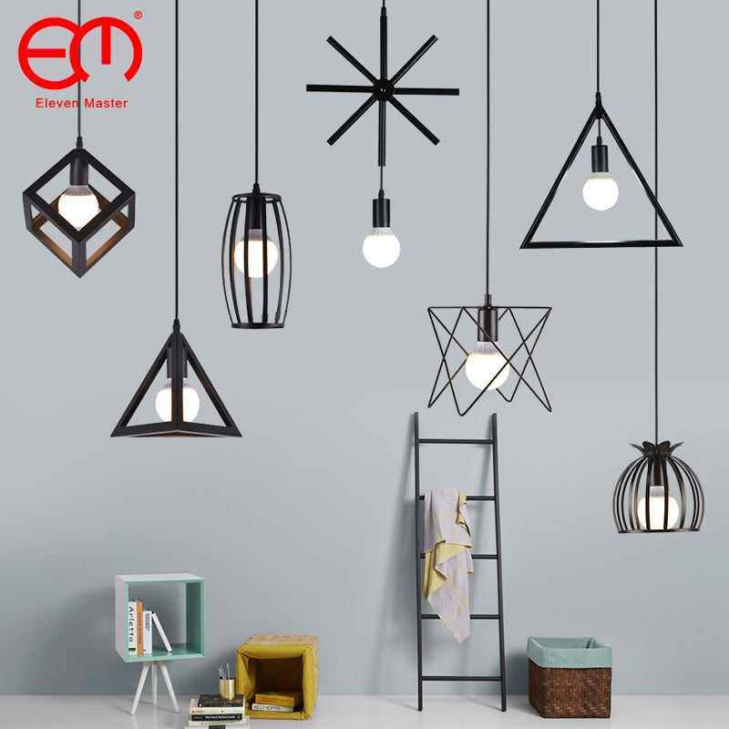 Nordic Pendant Lights Industrial Vintage Loft Lamp Iron Art Cage Black Hanging Lamp Kitchen living Room for E27 Led Bulb