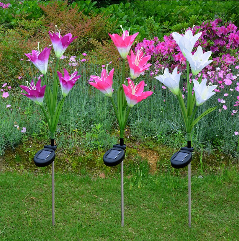 Outdoor LED Solar Light RGB Color Lily Garden Flower Waterproof Decorative Lamp 600AMH Solar Powered Yard Lawn Pathway Wedding