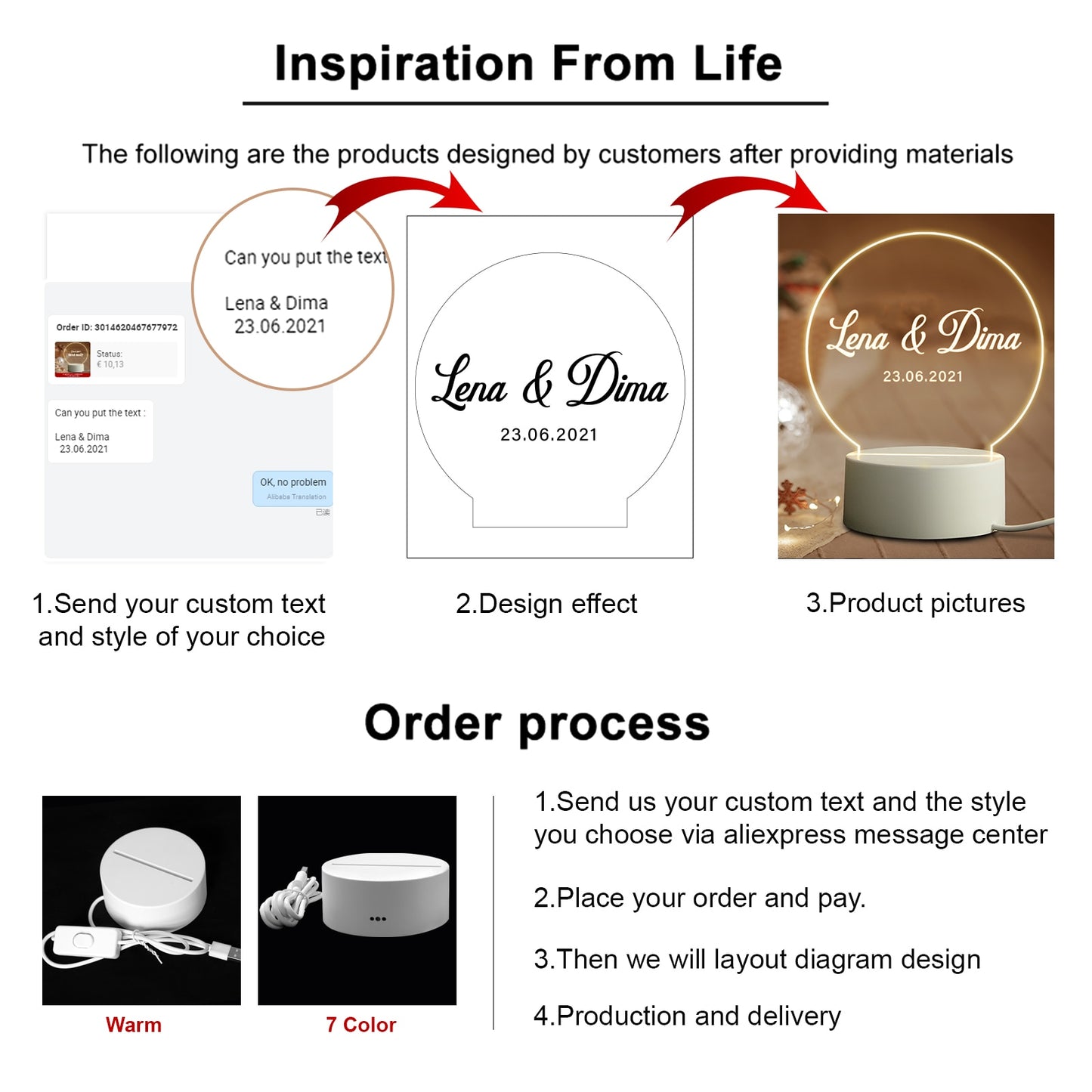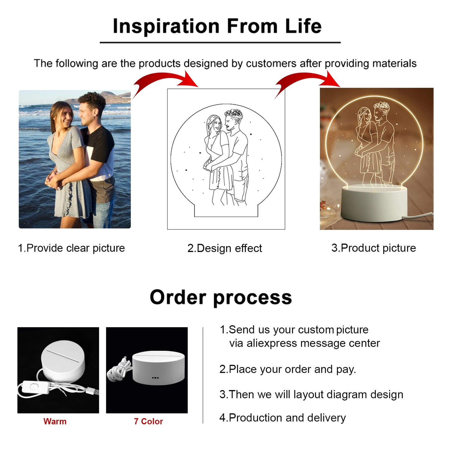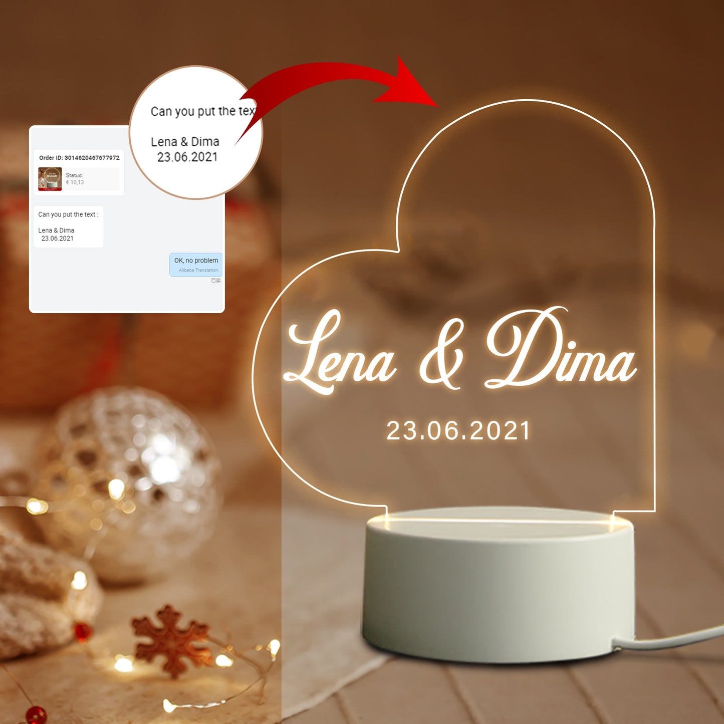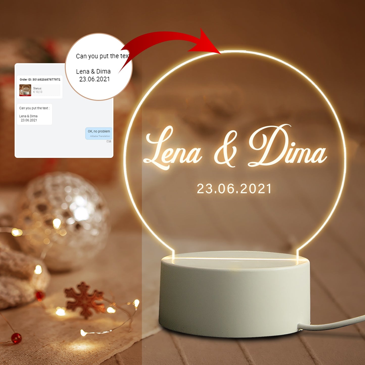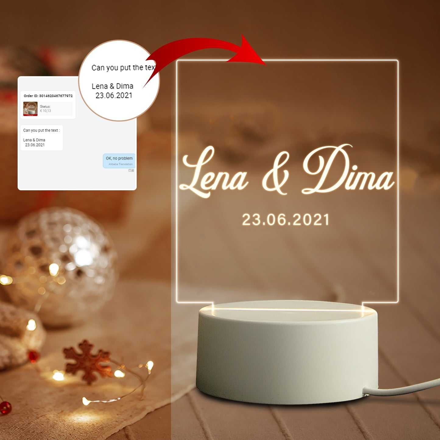 Personalized Custom Gifts 3D Night Light DIY Text Photo Night Lamp Wedding Anniversary Birthday Mothers Day Valentines Gift