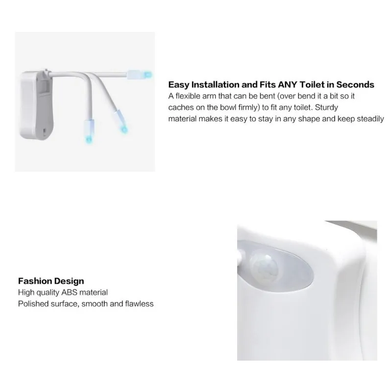 Installation is a breeze with this toilet light. Simply attach it to your toilet seat using the provided adhesive, and you're ready to go. The compact and lightweight design ensures a hassle-free installation process, and the ABS material guarantees durability.