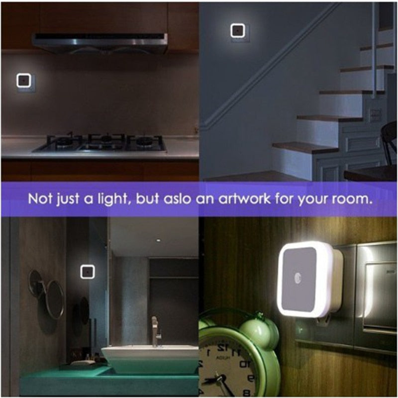 Mini LED Night Light EU/US Plug-in Dusk to Dawn Sensor Wall Nights Lamp Square for Bedroom Hallway Stairs Corridor 110V 220V
