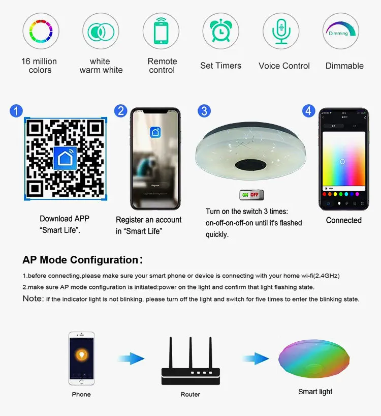 Features: 2.4G+RGB WIFI APP ceiling light