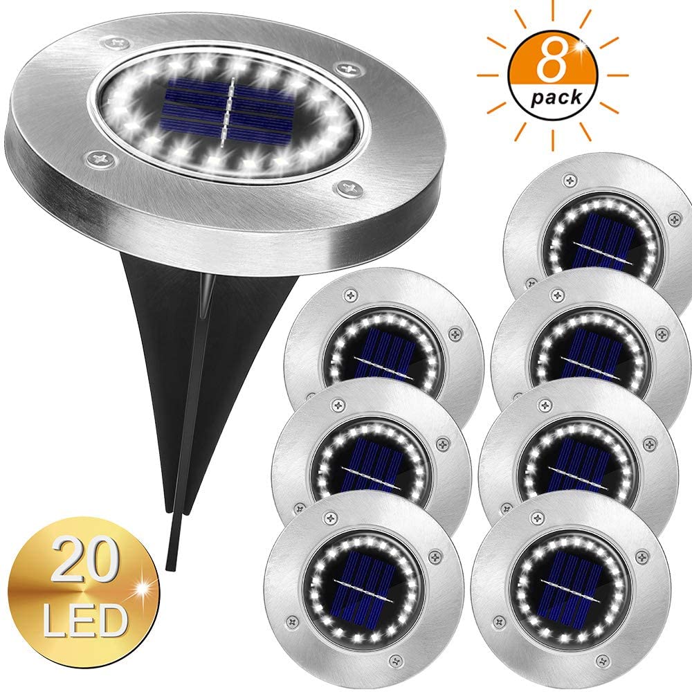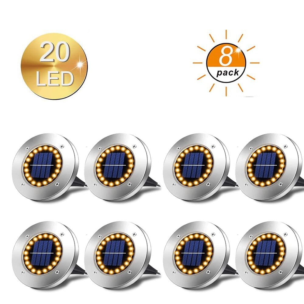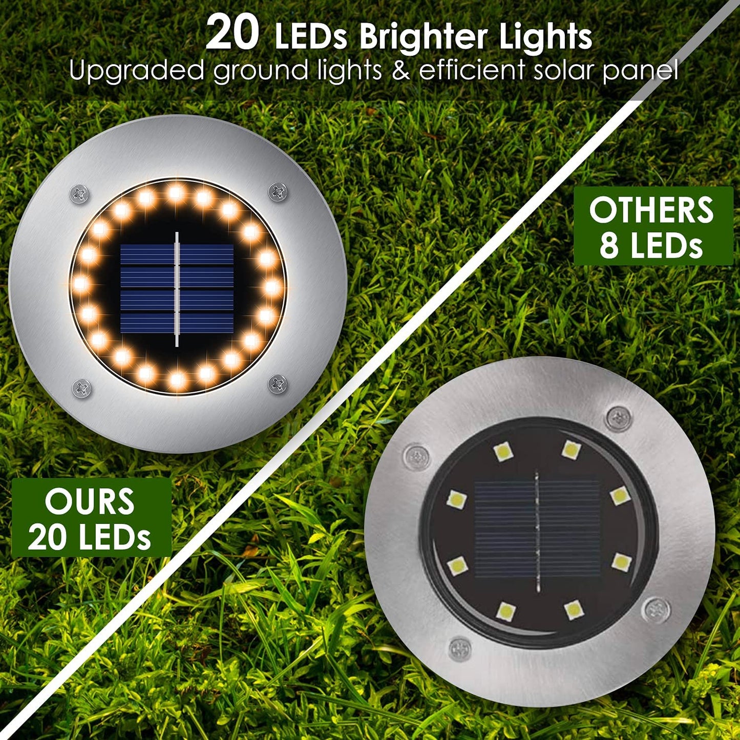 8Pieces Solar Lights Outdoor 20LED Solar Ground Lights Waterproof Light Underground Sensing Landscape Light for Garden Lawn Pathway