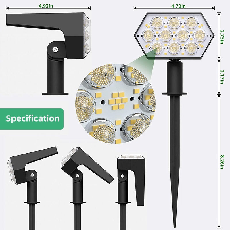 Solar Lights Outdoor 92 LED Solar Spot Lights Outdoor IP67 Waterproof Solar Garden Lights 2 In 1 for Yard Garden Porch