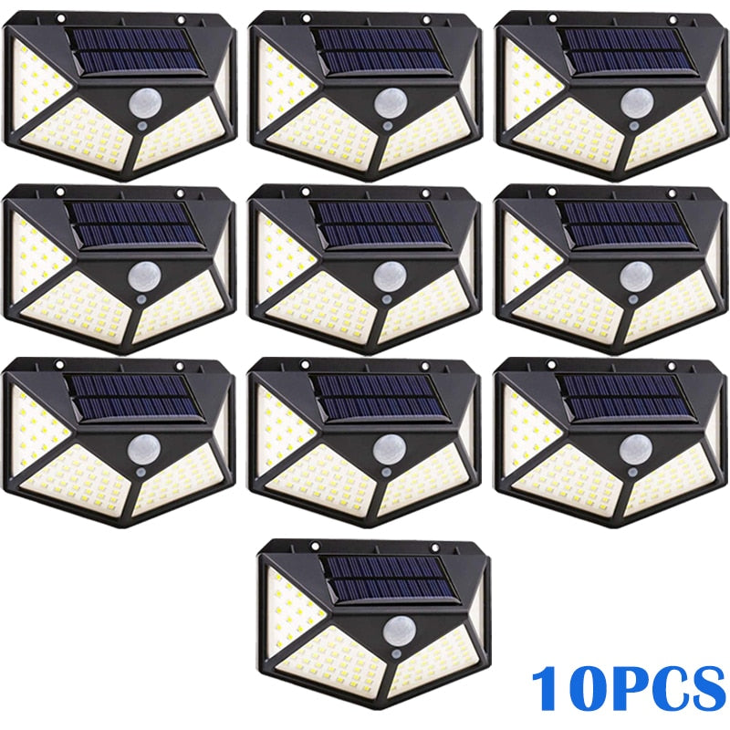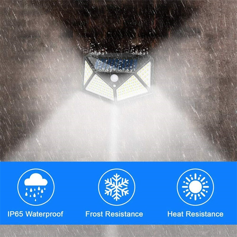 Newest Solar Lights Outdoor 100LED Wall Lamp 3 Modes Lighting Motion Sensor Security Wireless Waterproof Lights for Garden Decor