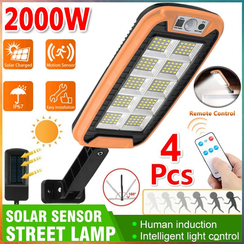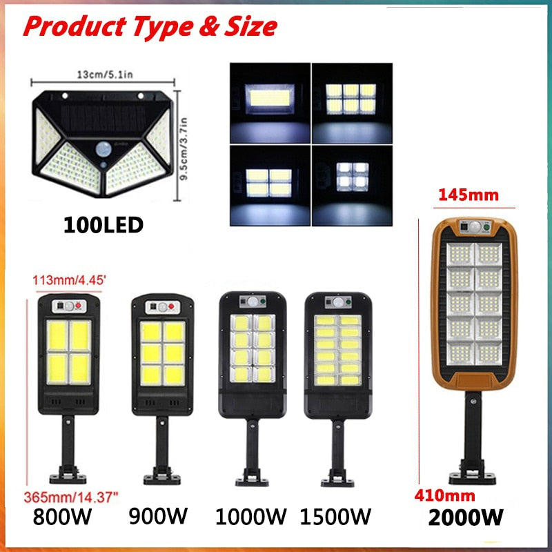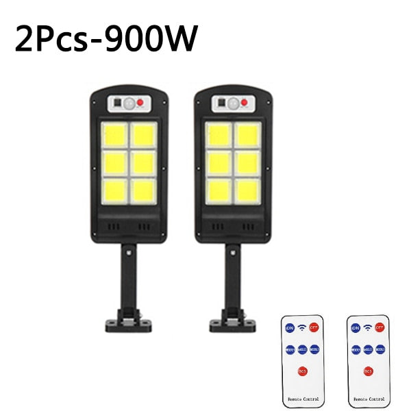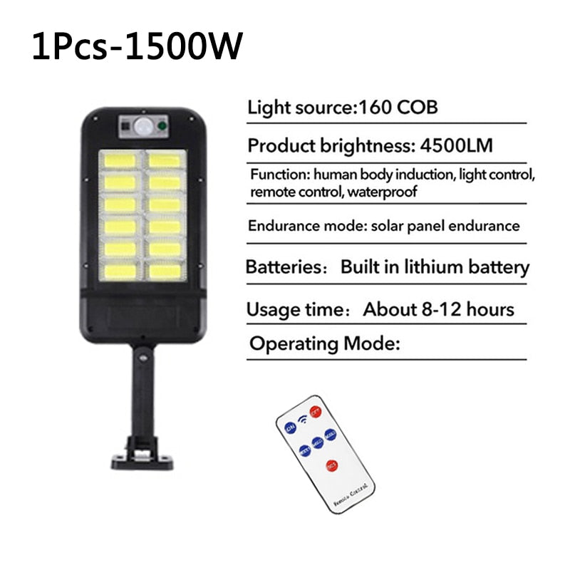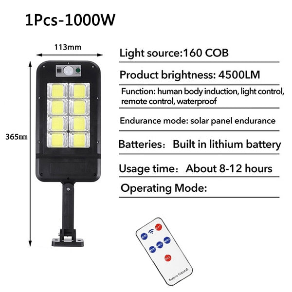 8/6/4 COB Solar Street Lights Outdoor, 2000W 160LED Wall Lamp 100LED Waterproof PIR Motion Sensor with Remote Control for Garden