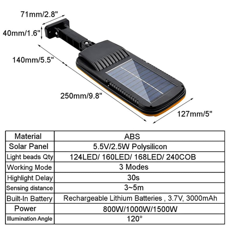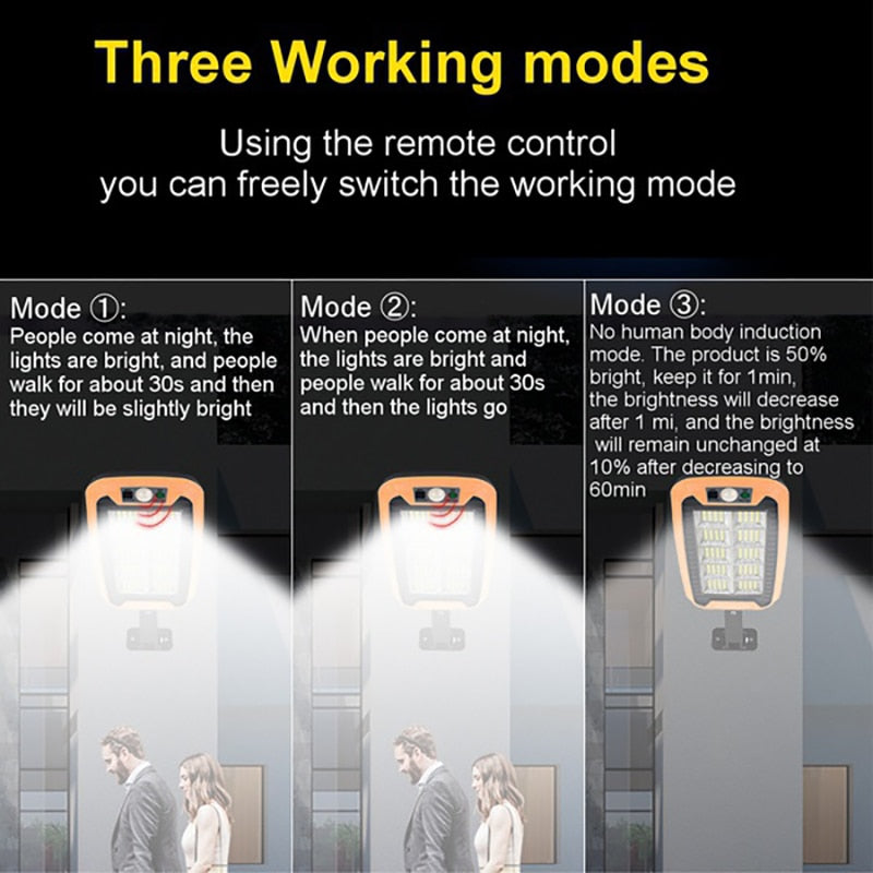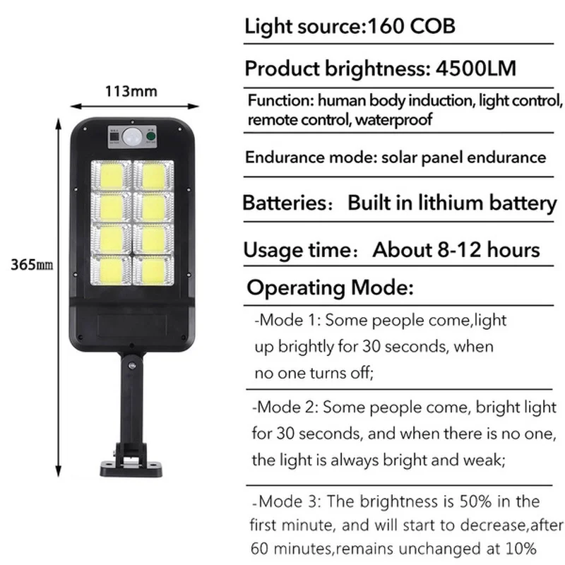 Looking for outdoor solar lights to illuminate your garden during the holidays? Look no further than our 8/6/4 COB Solar Street Lights Outdoor, equipped with 2000W 160LED Wall Lamp and 100LED Waterproof PIR Motion Sensor with Remote Control. With a working time of 12 hours and a modern style, these lights are perfect for any outdoor space. The solar cell type is a lithium battery, and the protection level is IP65, ensuring durability and long-lasting use. Powered by LED bulbs that are dimmable and included, these lights also feature 3 models, remote control, easy installation, and PIR Sensor Human induction for added convenience. Certified by CE, the body material is constructed of ABS and the battery has a capacity of 3000mah. Illuminate your outdoor space with our 8/6/4 COB Solar Street Lights Outdoor for a bright and eco-friendly solution to your lighting needs.