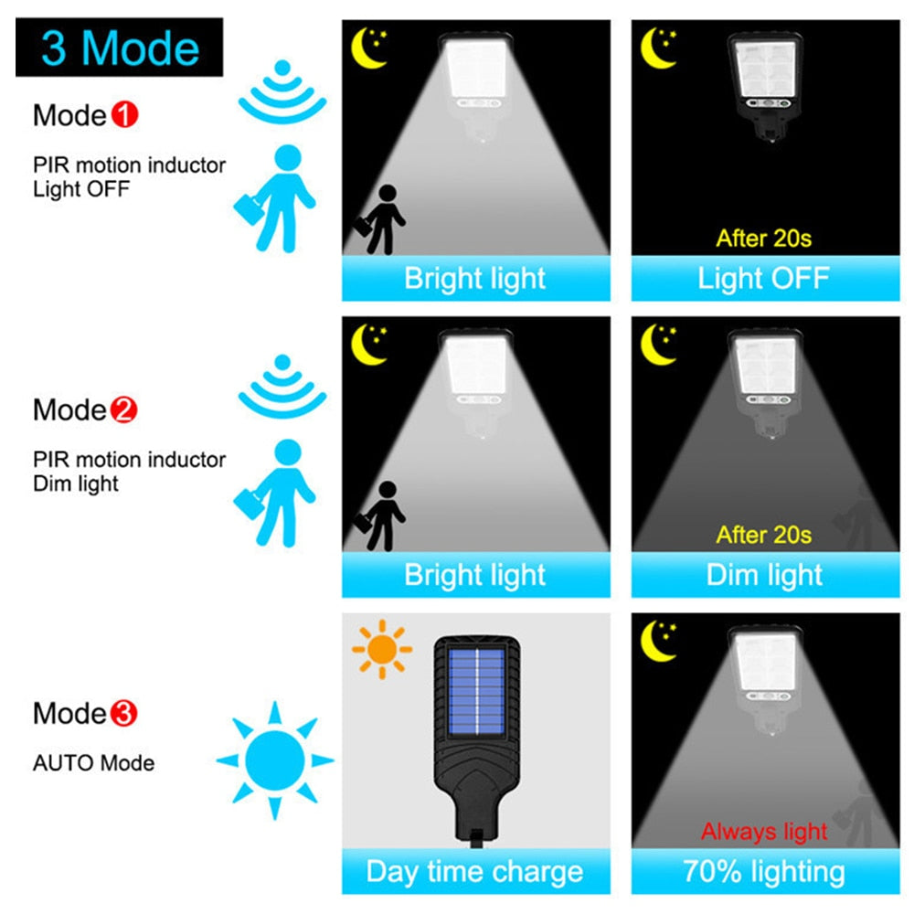 Solar Street Lights Outdoor Solar Lamp With 3 Mode Waterproof Motion Sensor Security Lighting for Garden Patio Path Yard
