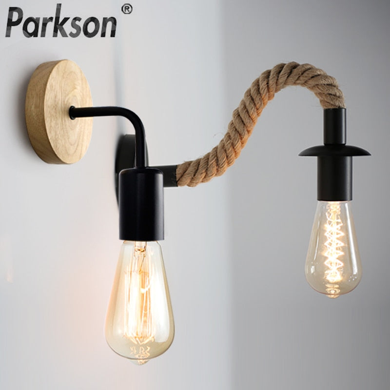 Vintage Hemp Rope Wall Lamp Wood Wall Lamp E27 110V 220V Indoor Loft Outdoor corridor Wall Lights Industrial Sconce Bedside Lamp